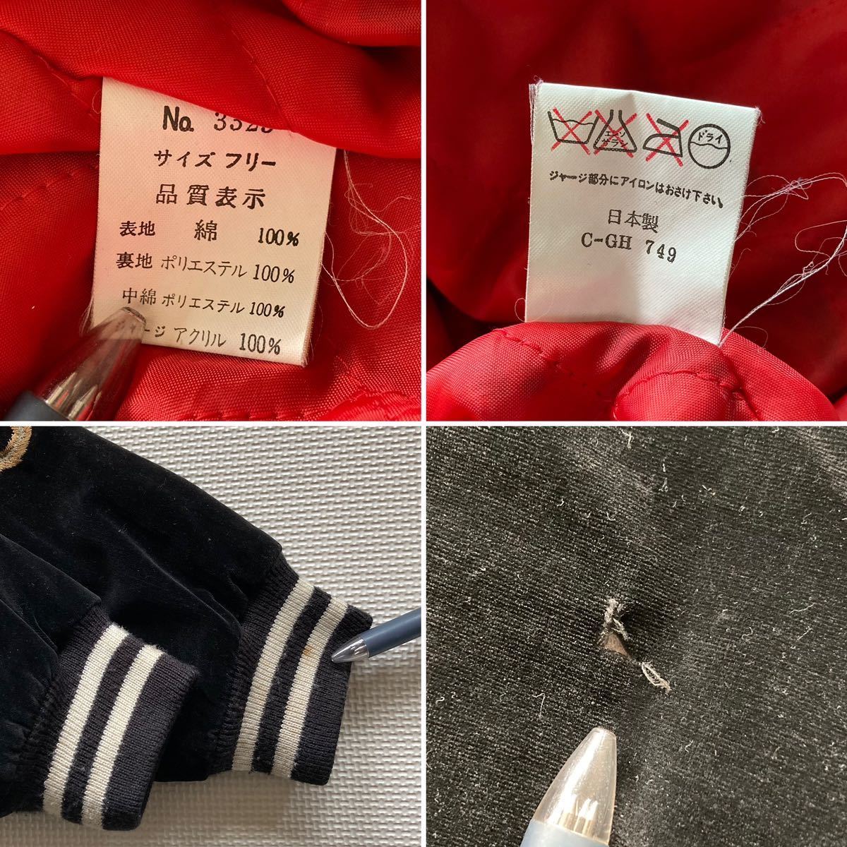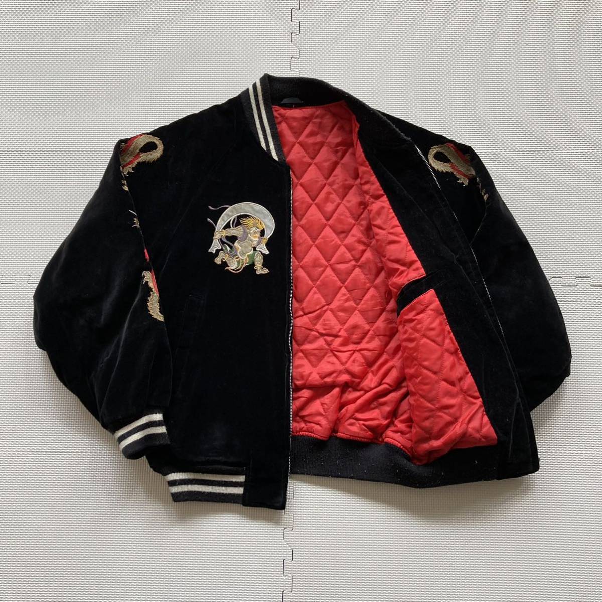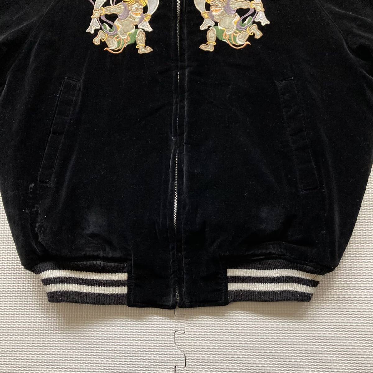 80s 90s 別珍 ベッチン 風神 豪華刺繍 中綿入り スカジャン ジャケット F