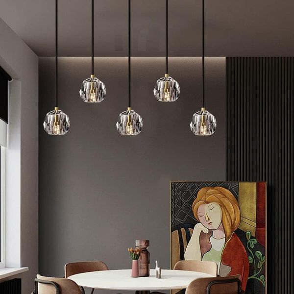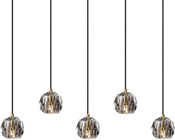 • 【商品仕様】材質:クリスタルガラス・銅。点灯方式:壁スイッチ。単体重量:(約)1200g。 サイズ:(約)Φ約11*H約11cm。【コード長さ】:60cm 2個 +70cm 3個。付属電球について:G9LED電球5個付き(3W 110V 電球色 調光不可)。取付方法:ダクトレール式、工事不要!※本商品は1個づつ分別取付のため、購入の際にご注意ください。