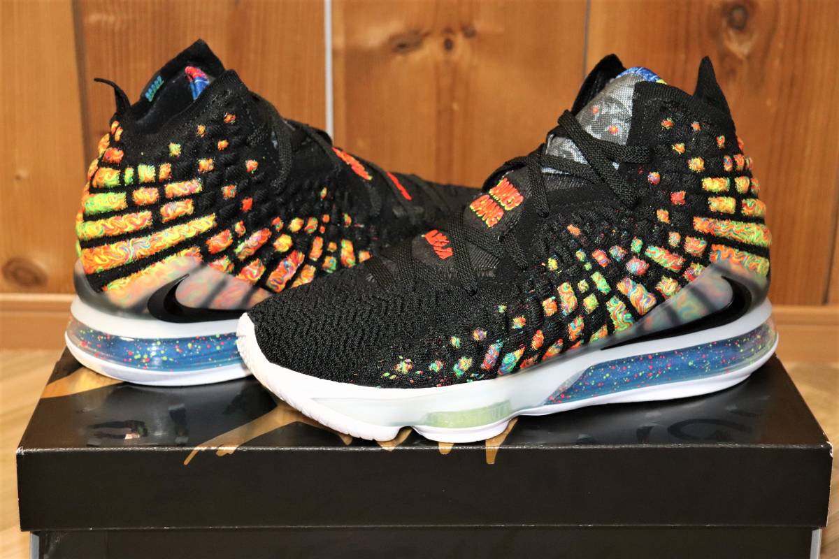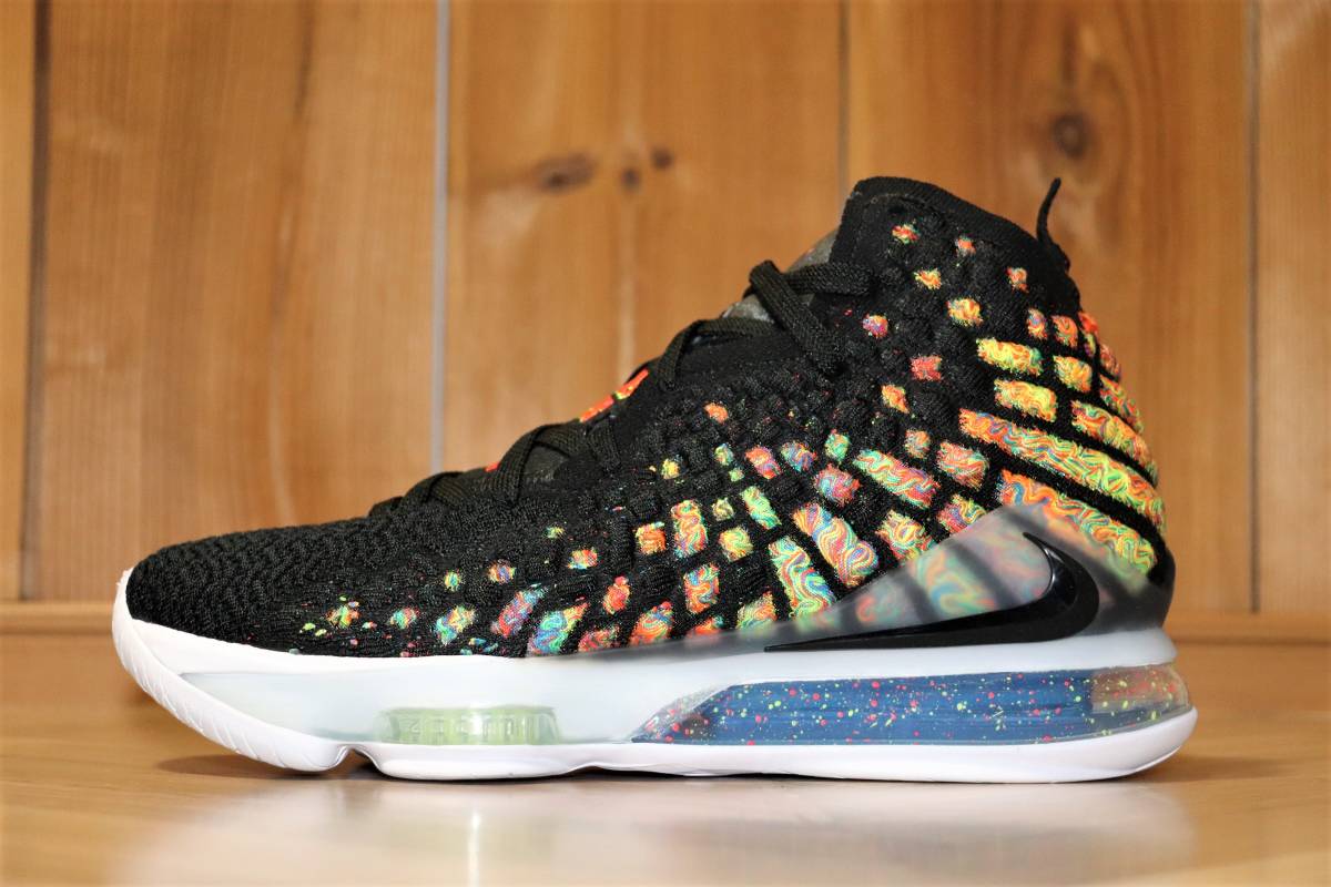 送料無料 即決【新品】 NIKE ★ LEBRON XVII (US8/26cm) ★ ナイキ レブロン17 BQ3177-005 箱付き ニット ブラック マルチカラー