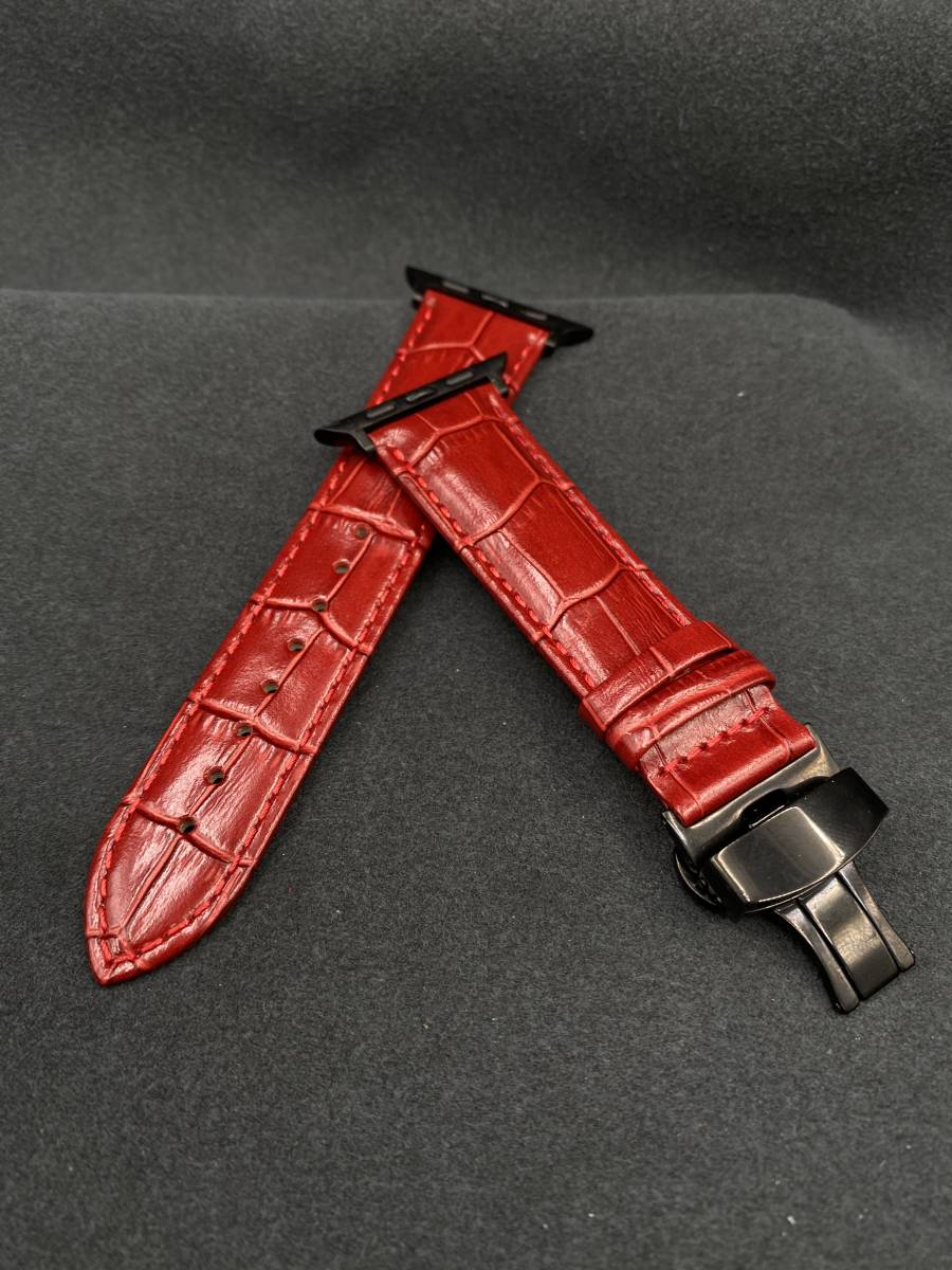 アップルウォッチ用  本革牛革クロコダイル型押しベルト