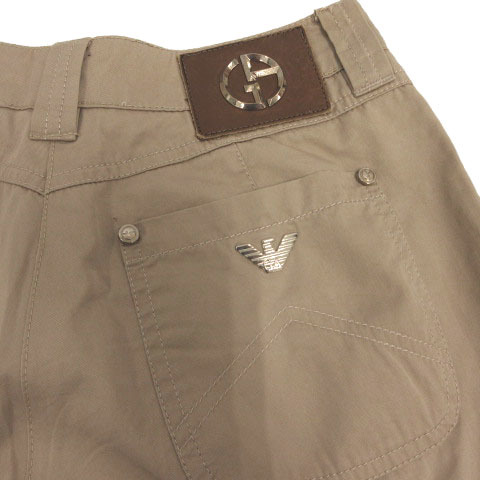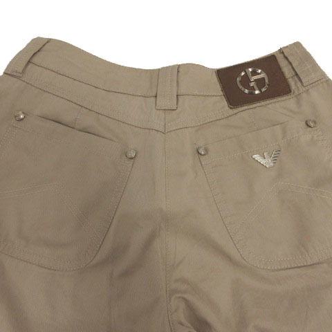 ジョルジオアルマーニ GIORGIO ARMANI パンツ ワイドパンツ タック クロップド丈 ガウチョ ロゴ コットン 茶系 ライトブラウン 26