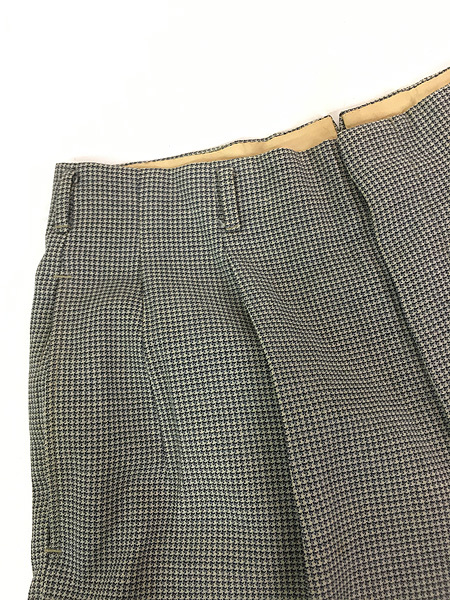 硬めウール素材・CONMARカムロックジッパーフライ・ウエストセンター割れ・高い位置にある細めのベルトループ・2タック・サイドスラッシュポケット・バックポケット両玉縁。
