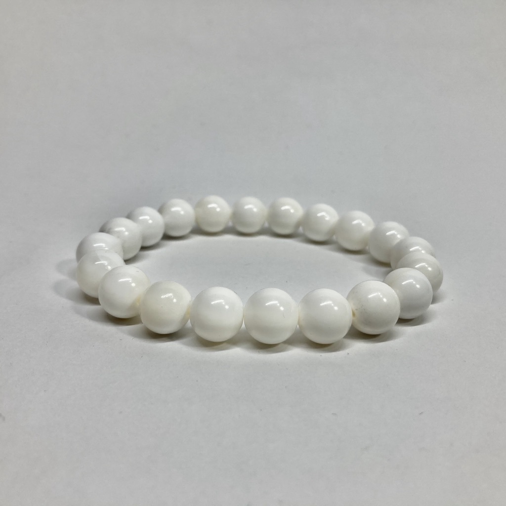 こちらは、ホワイトオニキスの10mm玉を使用したパワーストーンブレスレットです。シンプルなデザインですのでどんなコーディネートとも合わせ易いブレスレットです。サイズは内周約17cmです。(サイズ変更の場合は取引ナビにてご連絡をお願いします。) 数に限りがございますので気になる方はお早めにどうぞ。