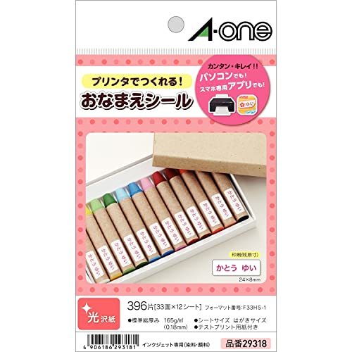 10・33面(24mm×8mm)・白無地 24×8mm 33面 29318・・Style:10・33面(24mm×8mm)・製品型番:29318・材質:光沢コート紙・ラベルサイズ:24mm×8mm(3列×11段)・対応プリンタ:インクジェット(染料+顔料)・フォト光沢紙(白無地)・少量でも手軽にシールが作れるはがきサイズの光沢紙ラベルです。 ・お名前シールが手軽にキレイに作れます。 ・色鮮やかに印刷できるフォト光沢タイプです。 GPNエコ商品ねっと掲載品