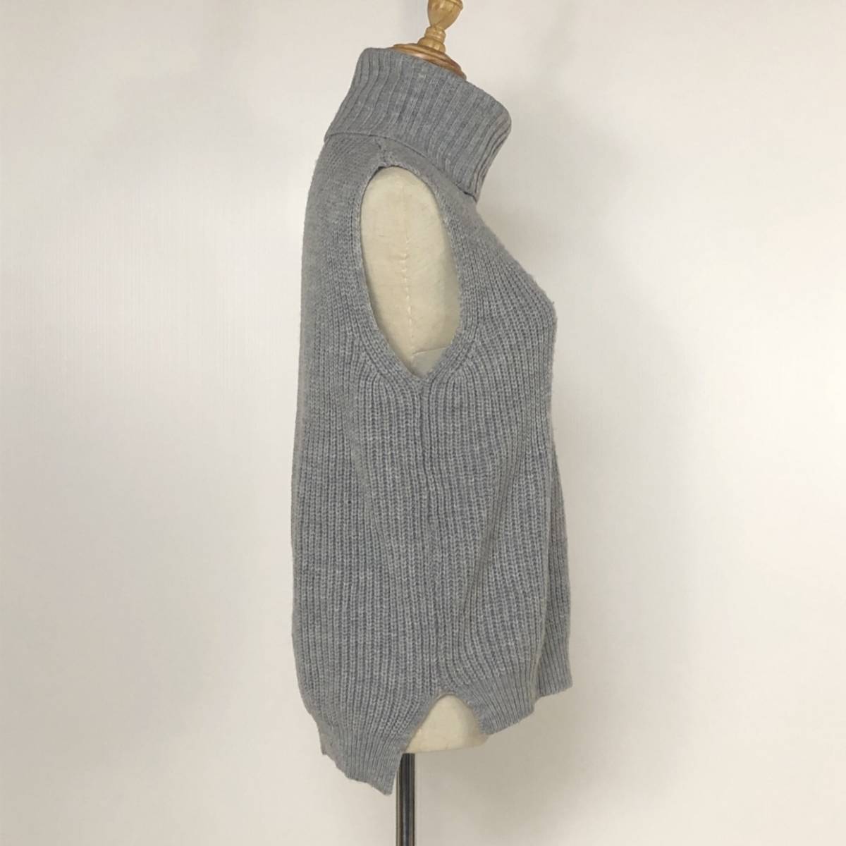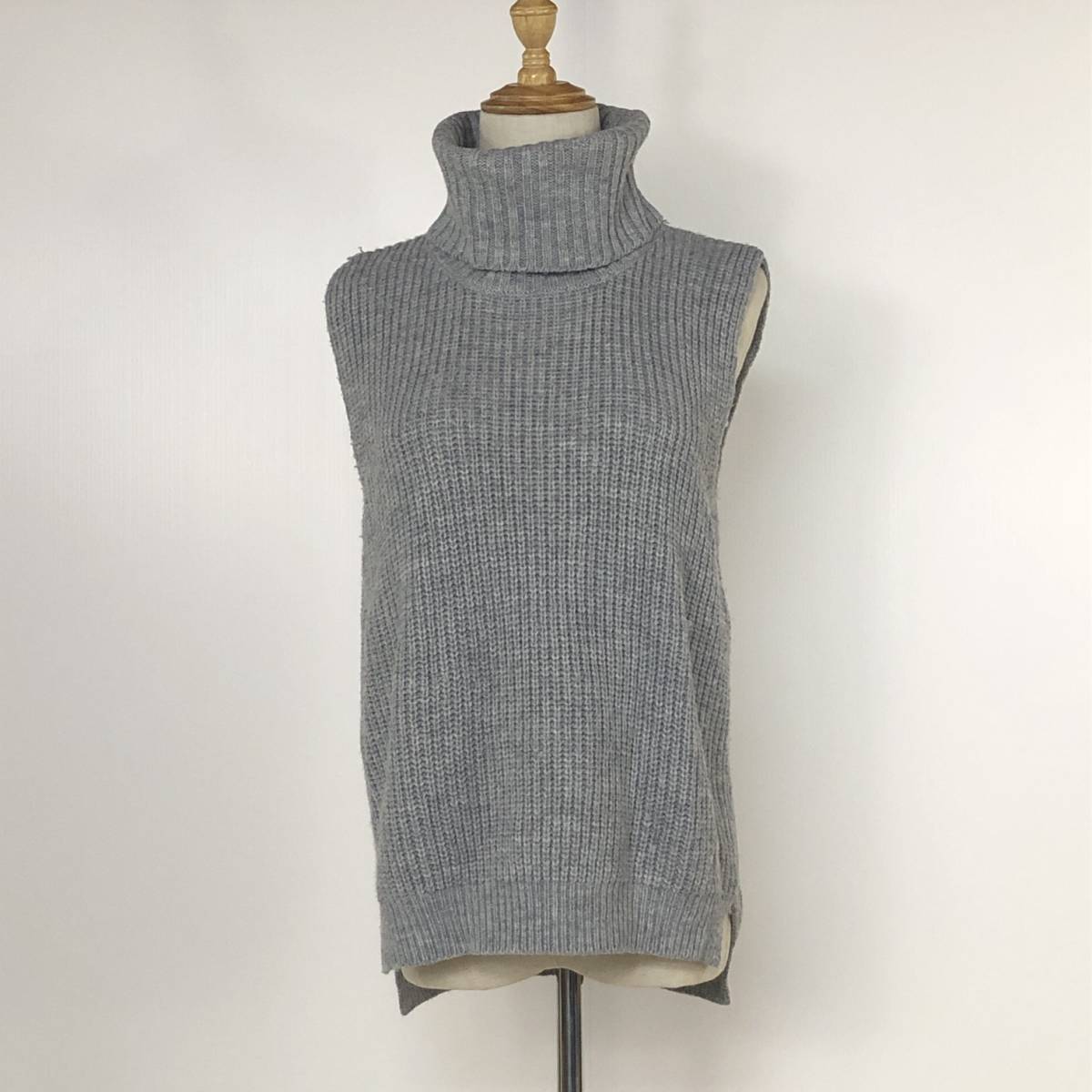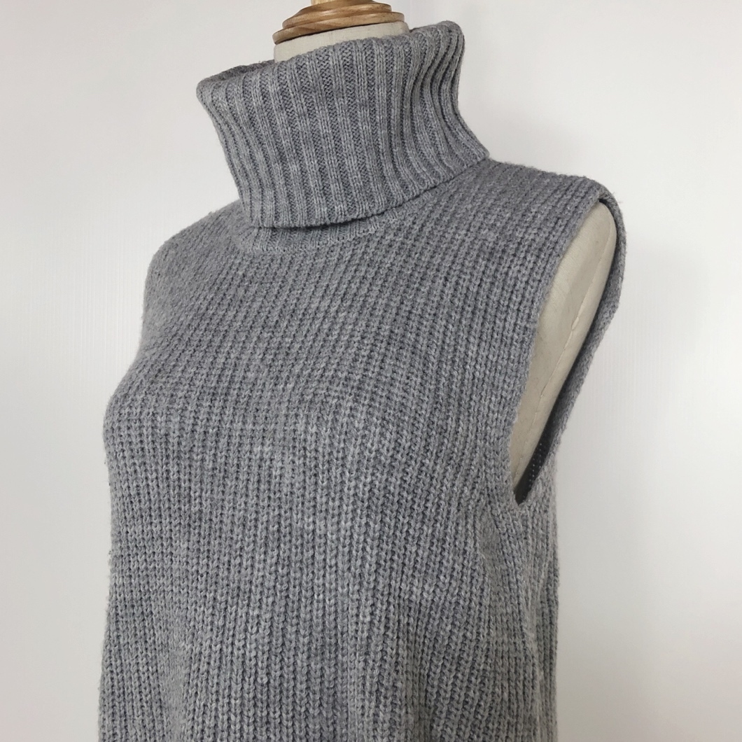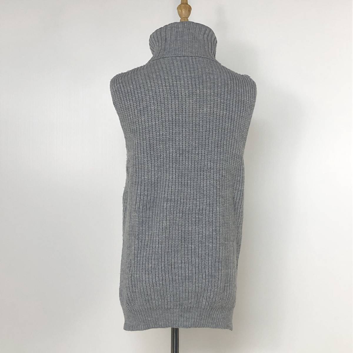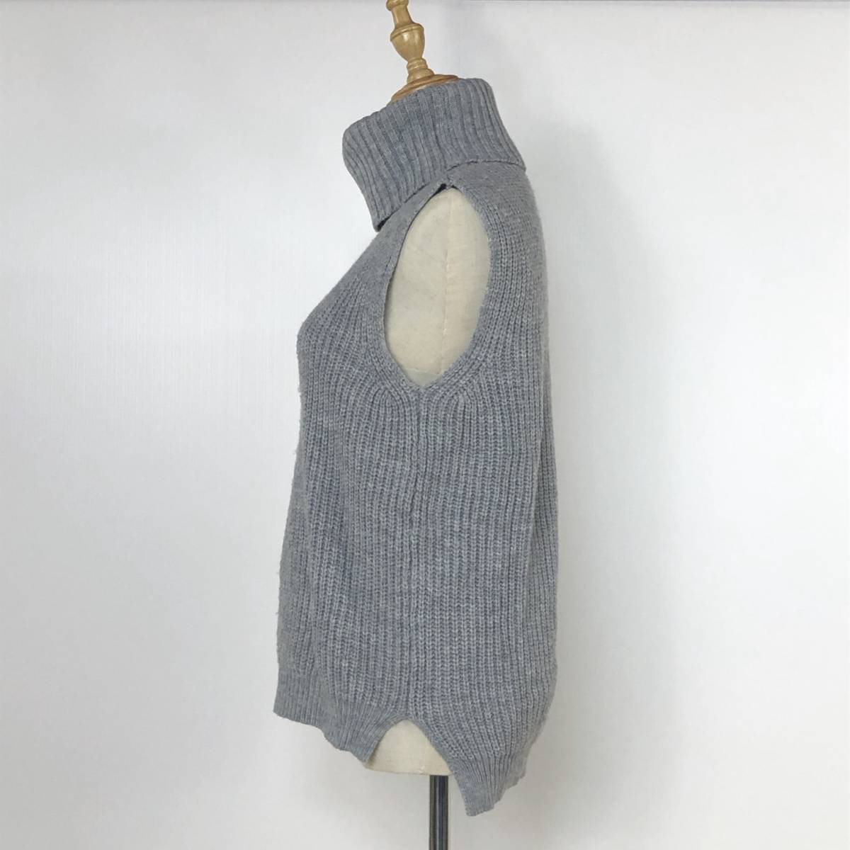 Y0383 レディース トップス ニット セーター 袖無し ノースリーブ タートルネック Mサイズ グレー 灰 春秋 シンプルデイリーカジュアル