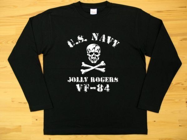 JOLLY ROGERS VF-84 黒 5.6oz 長袖Tシャツ 白 S ミリタリー ジョリーロジャース スカル ドクロ U.S. NAVY