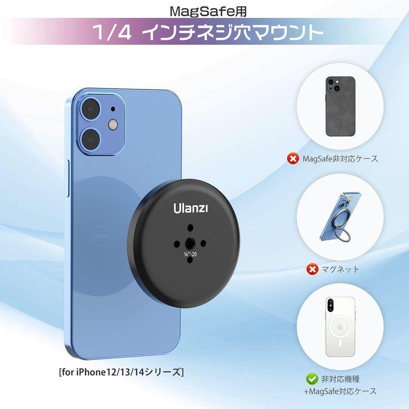 ★ Ulanzi 三脚マウント MagSafe用 スマホホルダー 磁気マグネット式 1/4インチネジ穴マウント 三脚用アクセサリー iPhone対応 マグセーフ式アクセサリー 超強力磁力 スマホ撮影