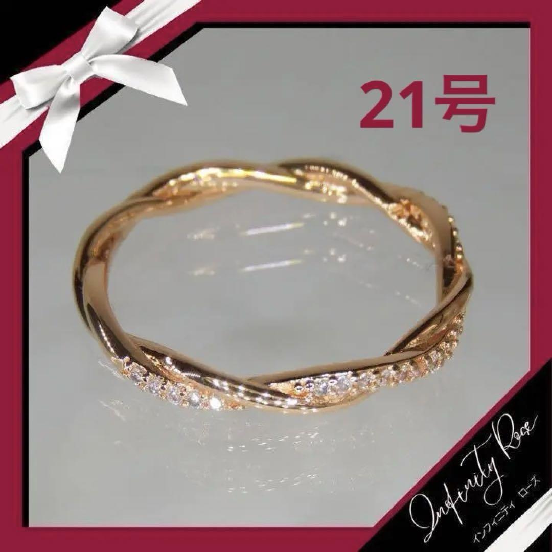 (R005P)21号 ピンクゴールドツイスト可愛い繊細な細身ジルコニアリング 指輪