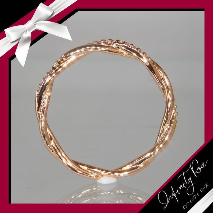 #ピンクゴールドツイスト可愛い繊細な細身ジルコニアリング