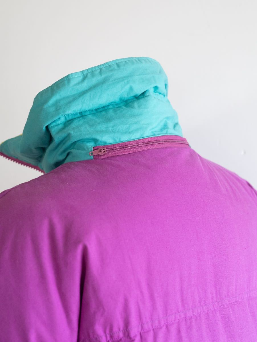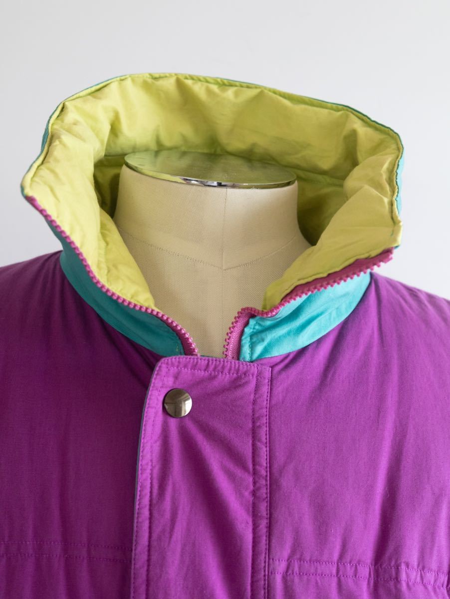 表地、裏地は共にコットン100%。リバーシブルのタイプでパープル、紫とグリーンのどちらの面でも楽しめます。