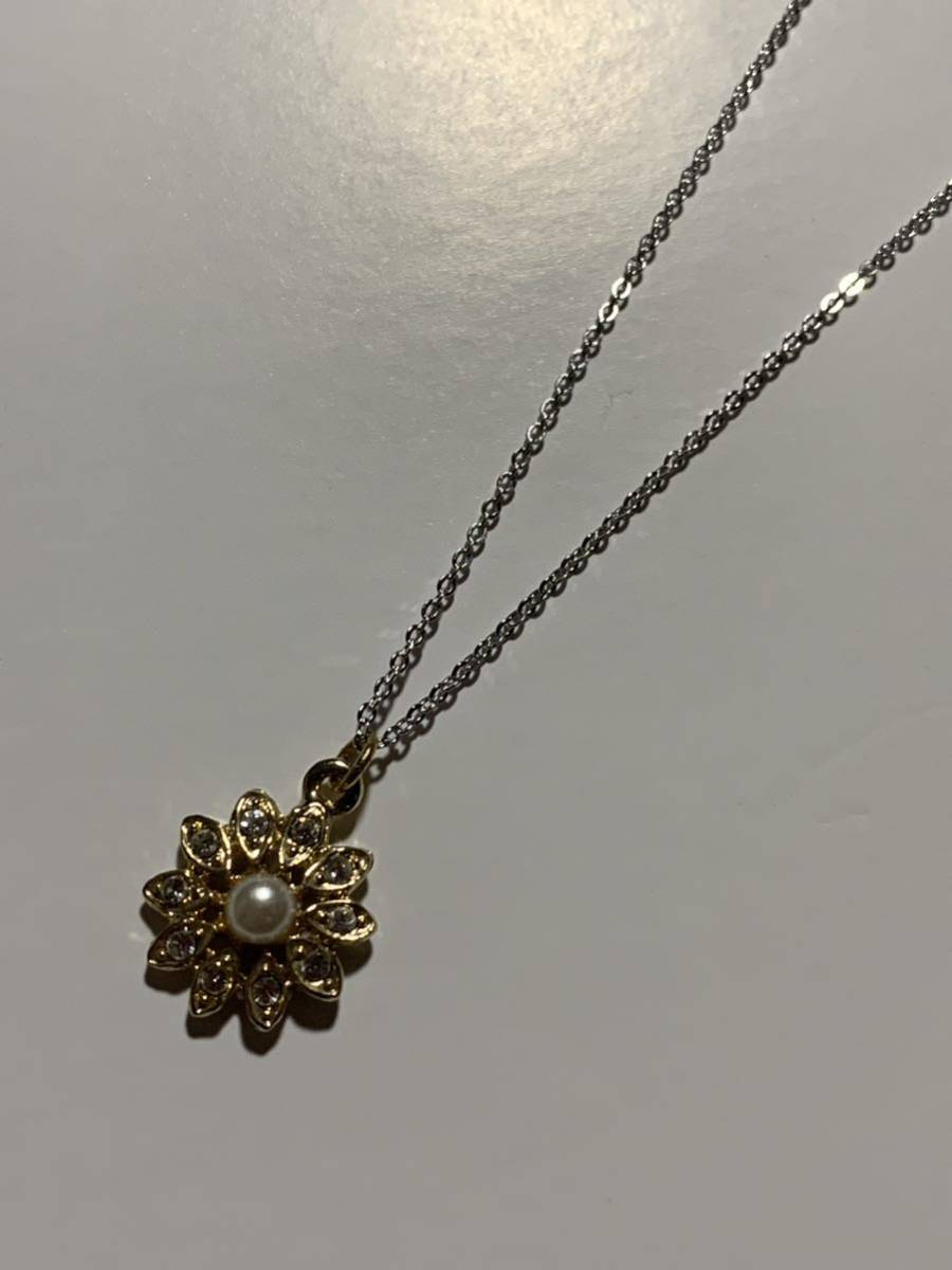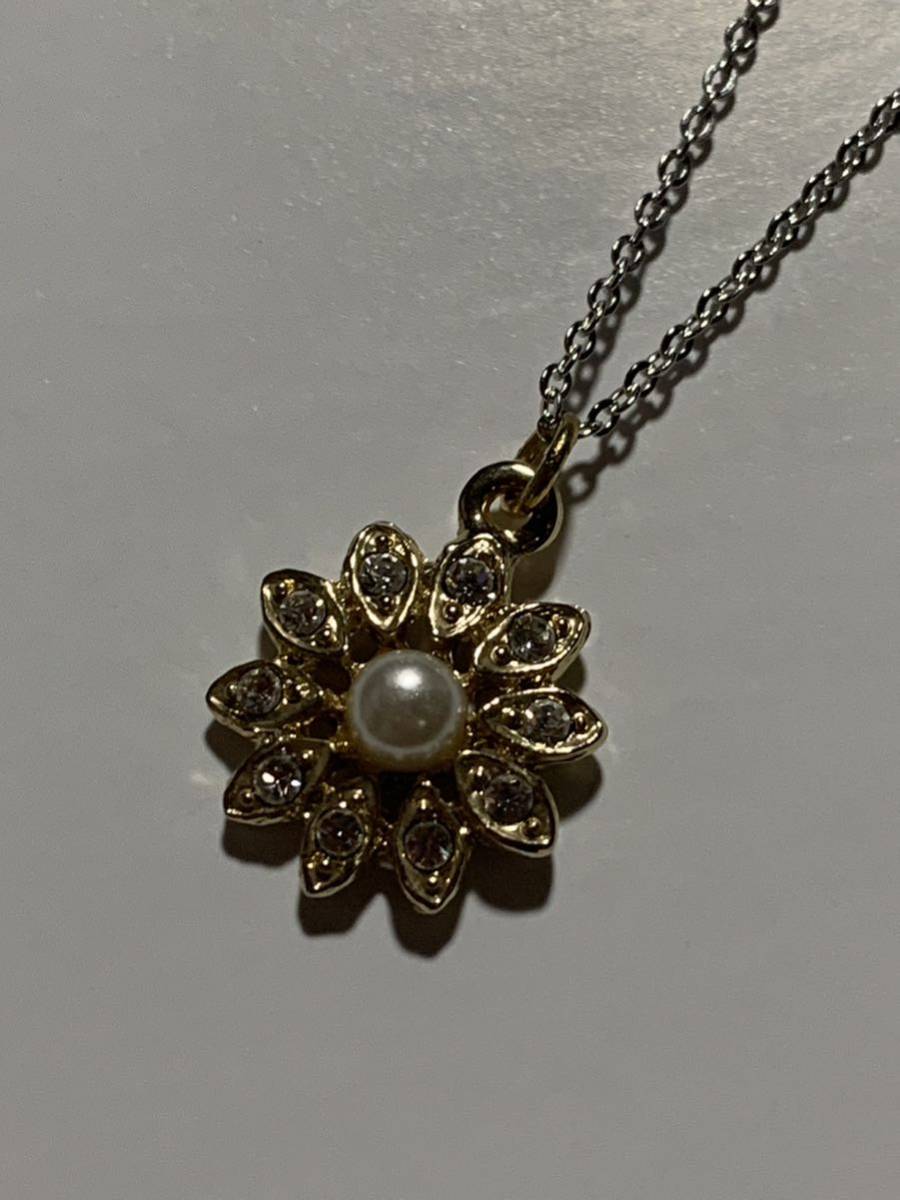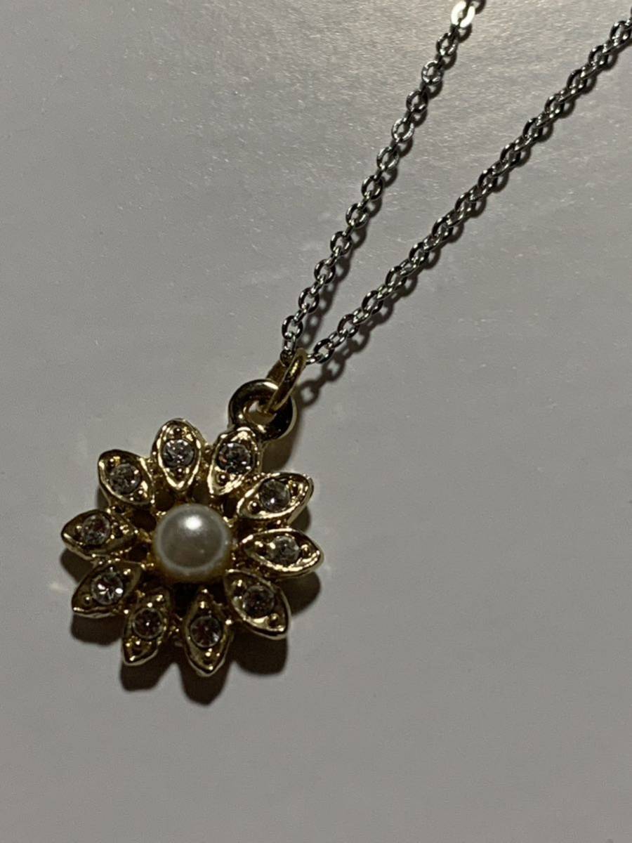 ジルコニアとフェイクパールのペンダントネックレスです、トップのサイズは15×15ミリ、チェーンはシルバーカラーで45センチです