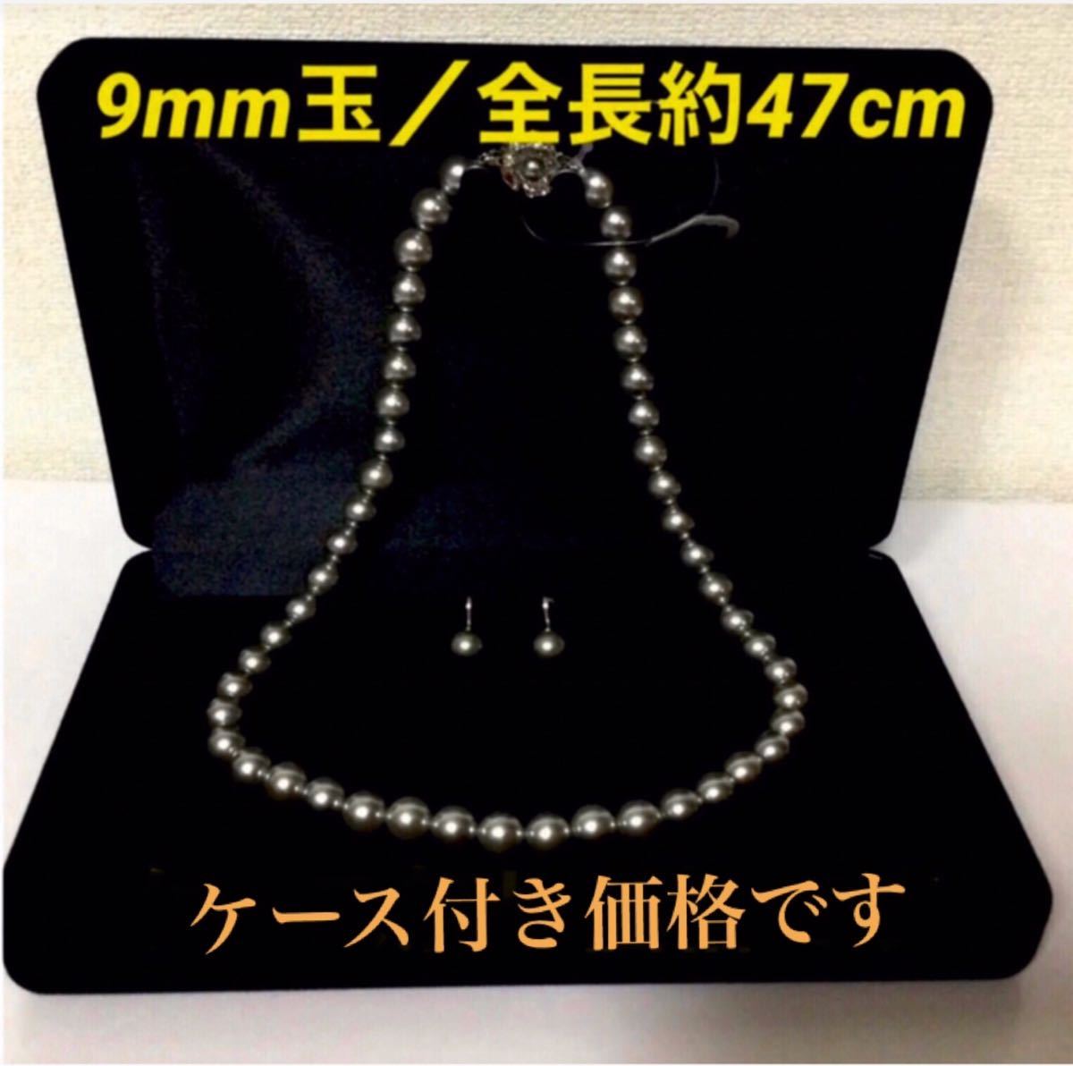SALE価格 最高級本貝パール ネックレス10mm玉/全長約47cm/イヤリングセット カラー:ライトグレー