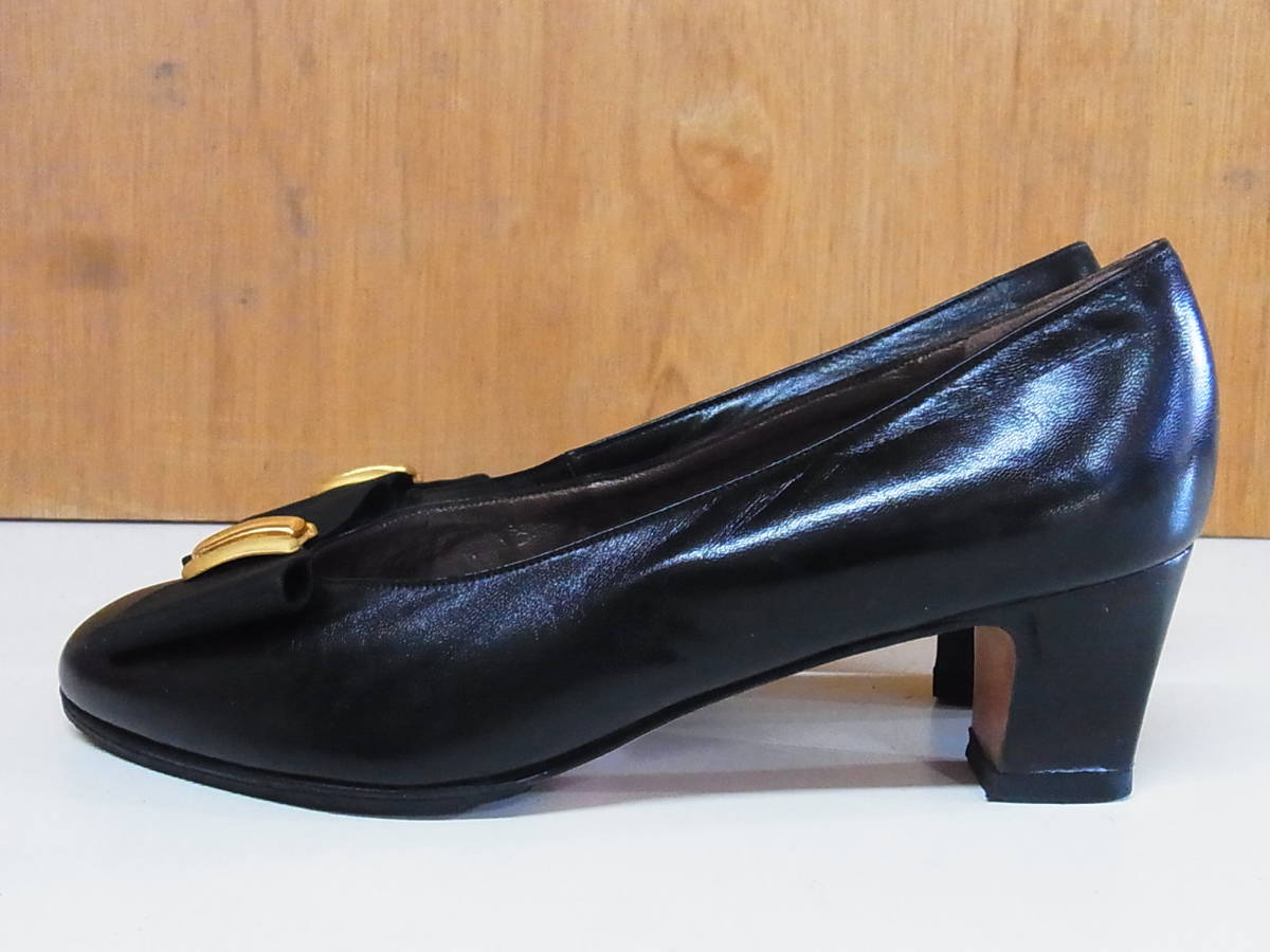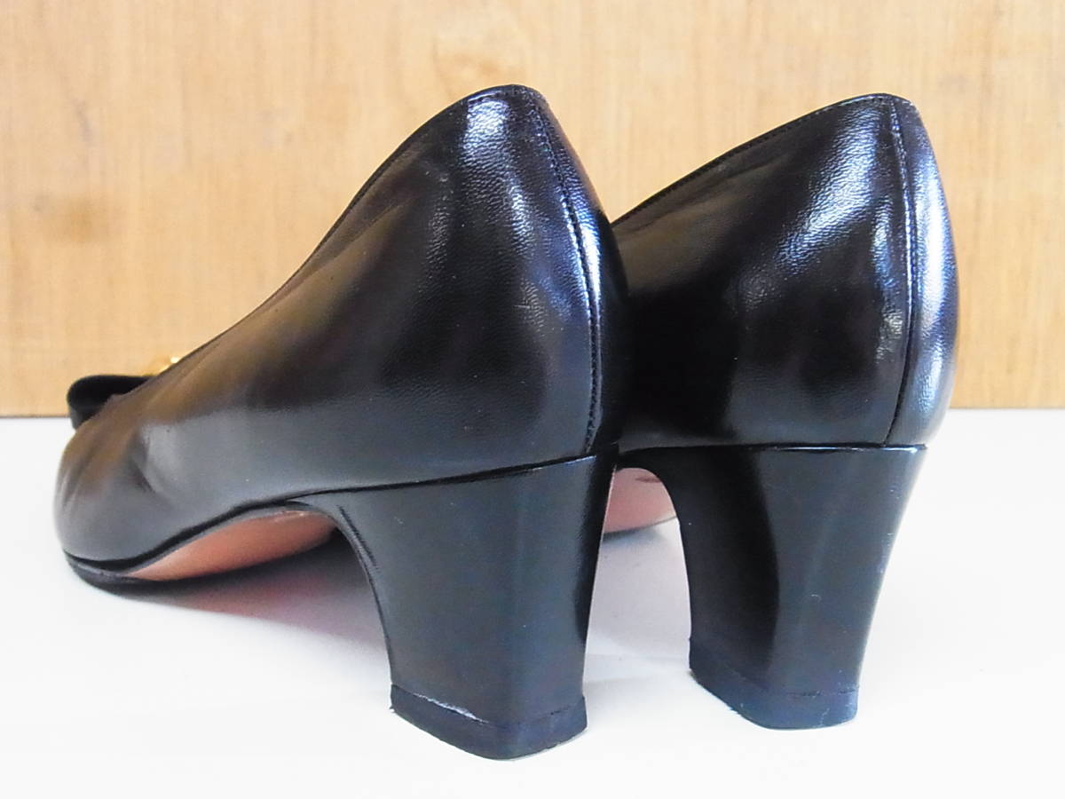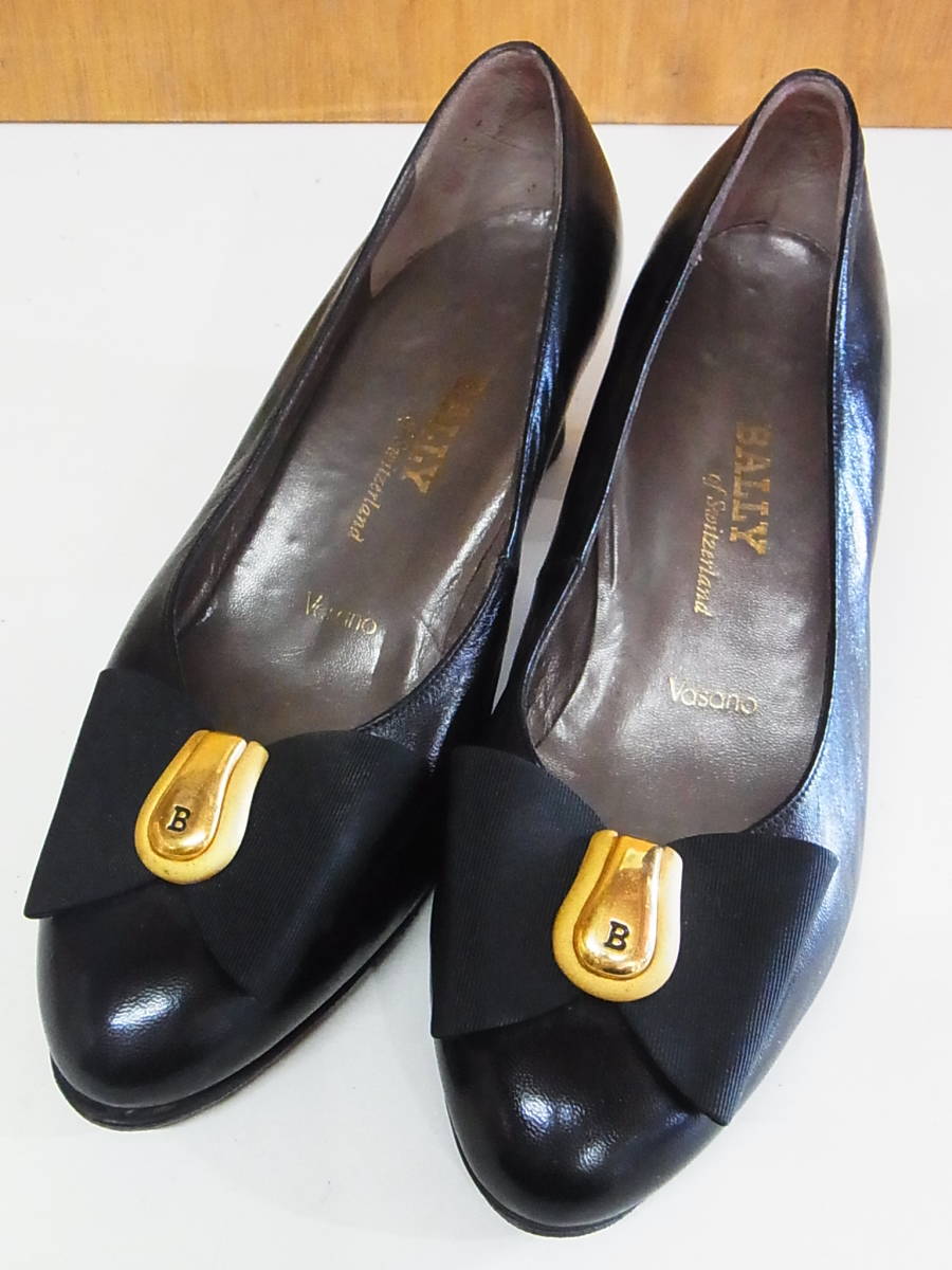 | 良好 スイス製 BALLY バリー ロゴ金具 レザー パンプス 黒 サイズ3 22センチ | ||