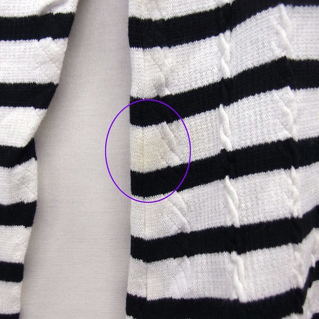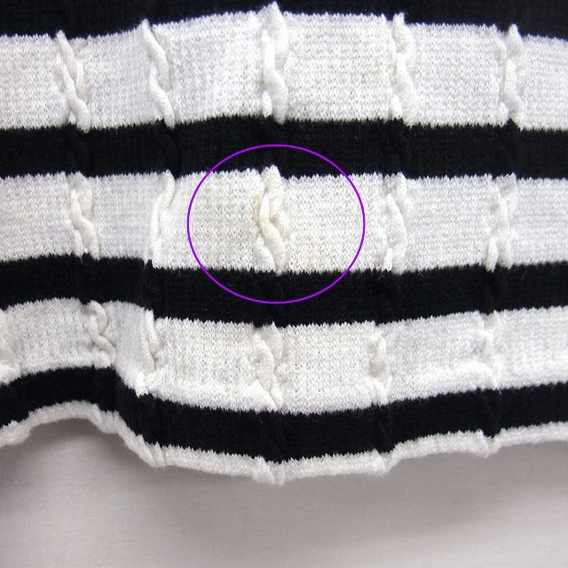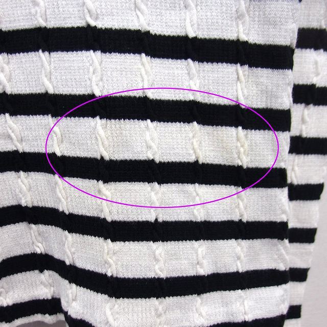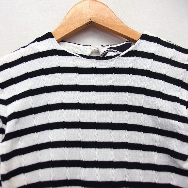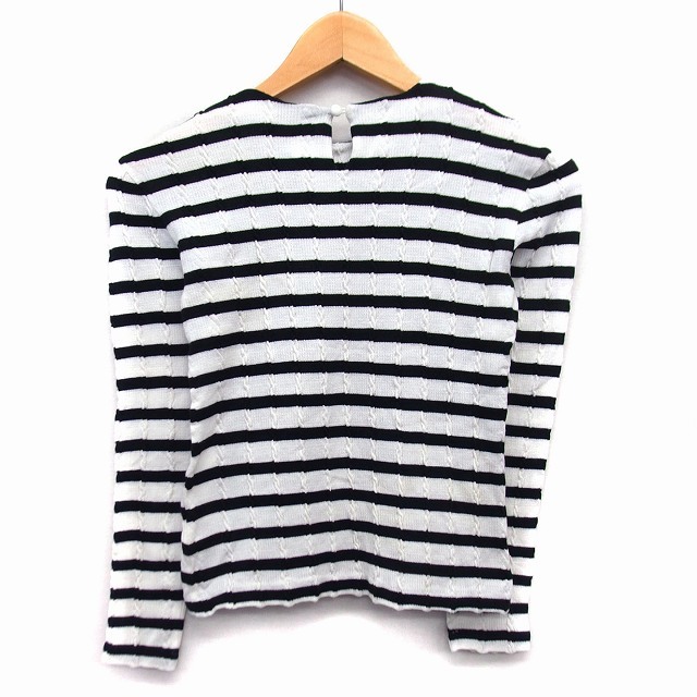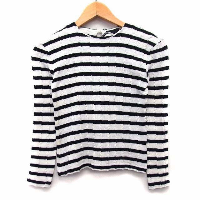 ジーヴィージーヴィー G.V.G.V カットソー ボーダー 柄 ロープ編み 長袖 丸首 コットン 綿 XS ホワイト 白 ブラック 黒 /HT7 レディース