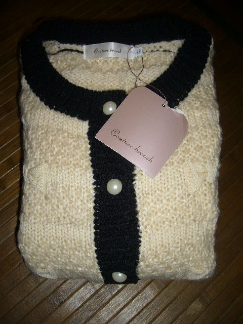 141-67♀: 新品タグ付き Couture broochクチュールブローチ ワールド ニットカーディガン 長袖 size.M 色.キナリ
