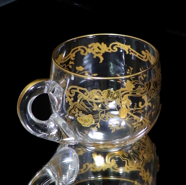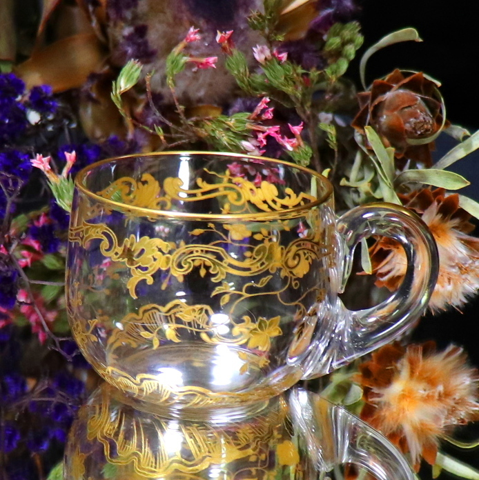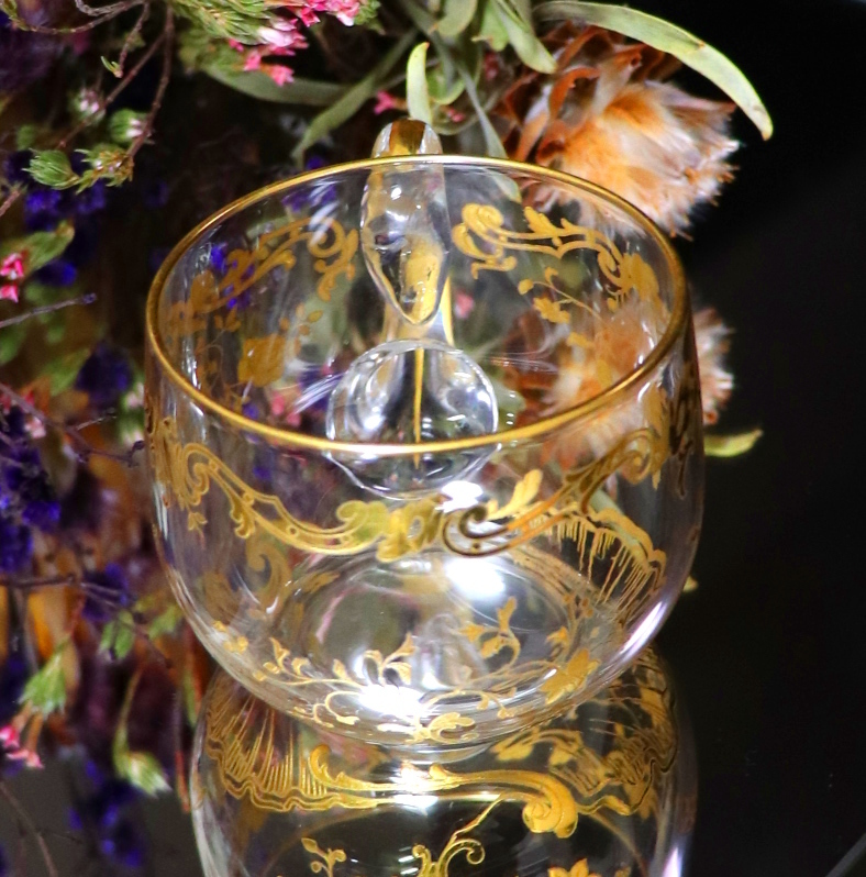 こちらはフランスを代表するクリスタルガラス最高峰ブランドの、オールド・バカラ(BACCARAT)の非常に貴重な金彩装飾取っ手付きグラス(デザート/ポット/ミルク/入れ物/調味料入れ/ソースポット)です。