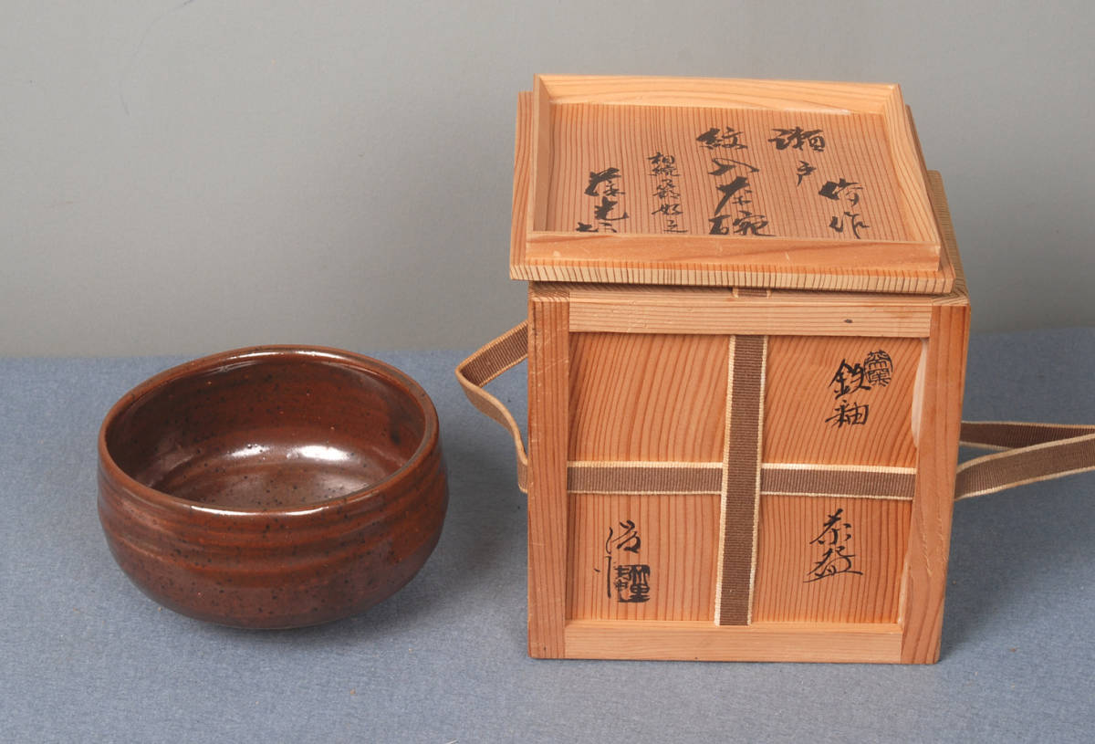 | ご覧頂きありがとうございます。 | 瀬戸焼き 鉄釉紋抹茶碗/葵窯 竹里庵 加藤俊雄 作 |