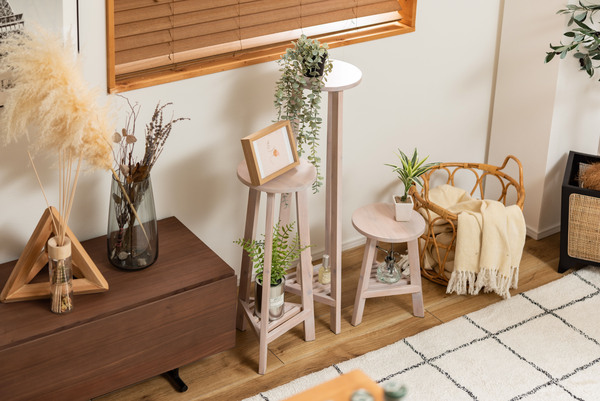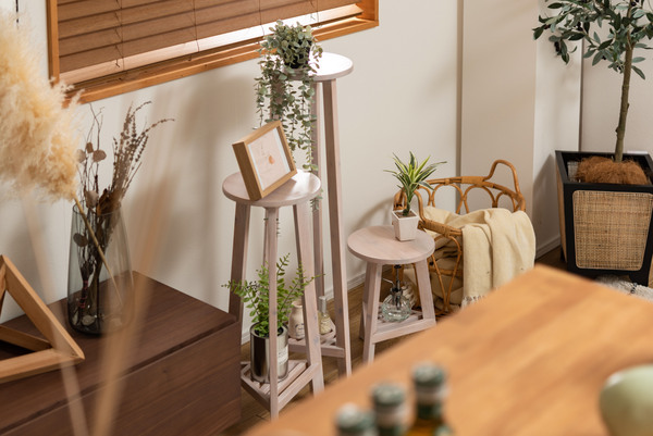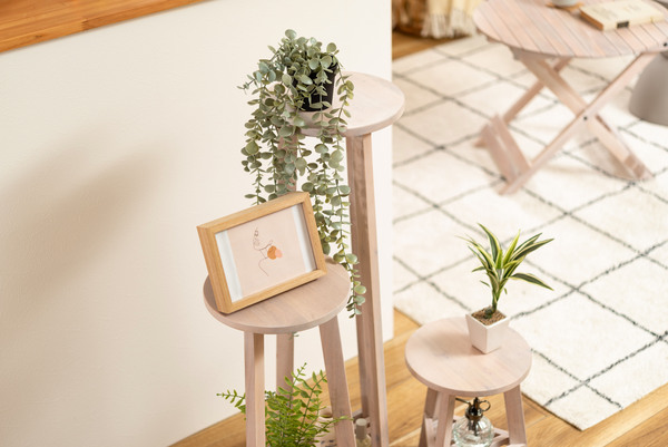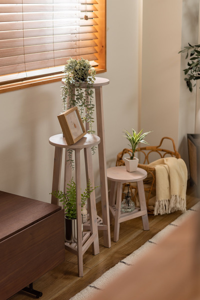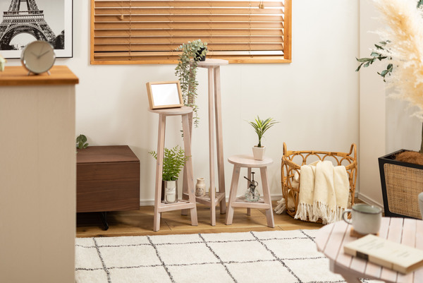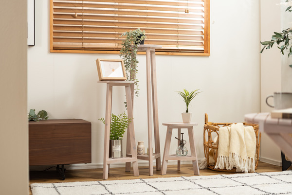 天然木が味わい深いプランターベース。 サイズ違いで揃えてもバランスが良く植物を飾ることができます。 植物と調和する美しい木目なので、置くだけで植物が引き立ちます。 軽量なので持ち運びもラクラク。 下段の小さい棚は植物やちょっとした小物置きに。 脚裏フェルト付きなので床への傷防止にもなります。 スリムなシルエットなので、お部屋のコーナーやちょっとしたスペースに最適なサイズ。 新色のホワイトは、ほんのり木目を出したホワイトウォッシュの味のある仕上がりです。