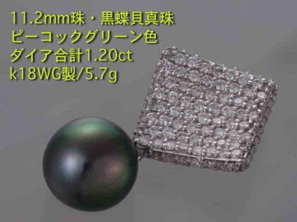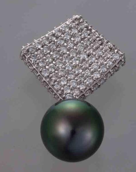 コメント | [[全ての商品に品質保証カードが付きますのでご安心ください]] 11.2x11.5ミリの黒蝶貝真珠です。ほのかにグリーンを感じる、とても美しい真珠です。この真珠に合わせたように、ダイアも豪華に使われており、合計1.20カラットの刻印があります。とても綺麗に輝いています。シンプルで決して大きなものではありませんが、一目で高級品だとわかる逸品です。 |