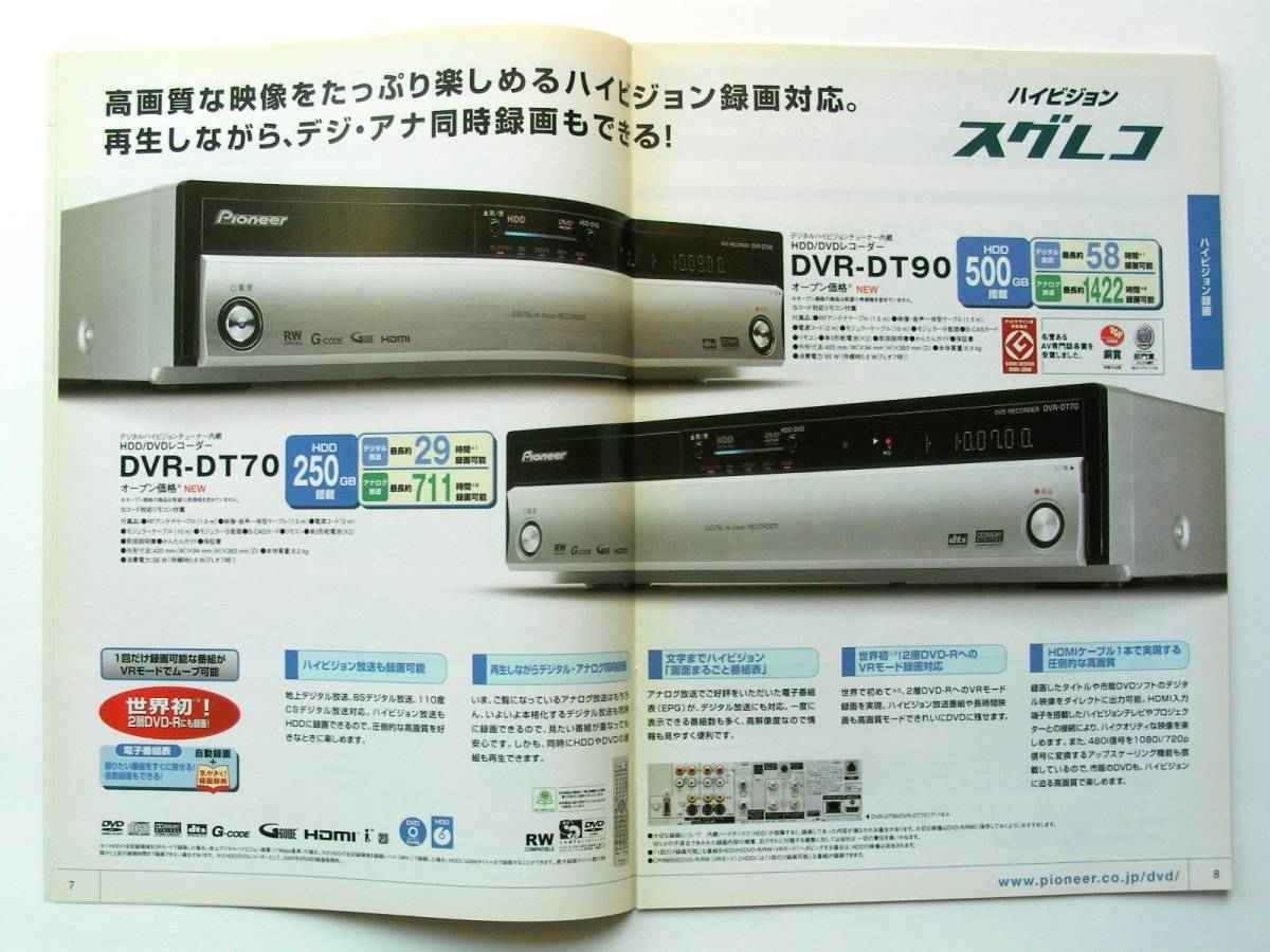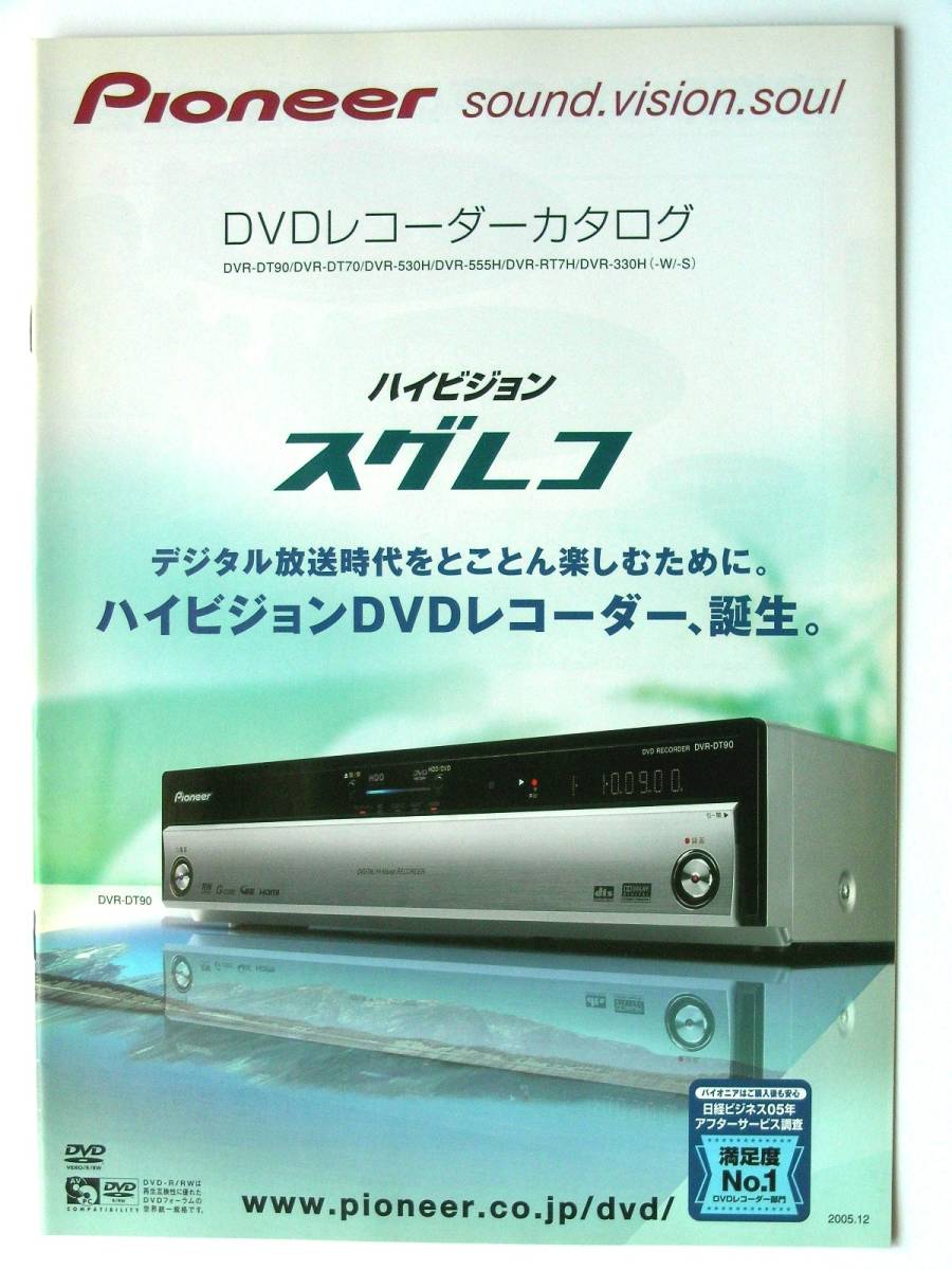 【カタログのみ】3344◆パイオニア DVDレコーダー スグレコ 2005年12月◆DT90 DT70 DVR-530H DVR-555H DVR-RT7H 他
