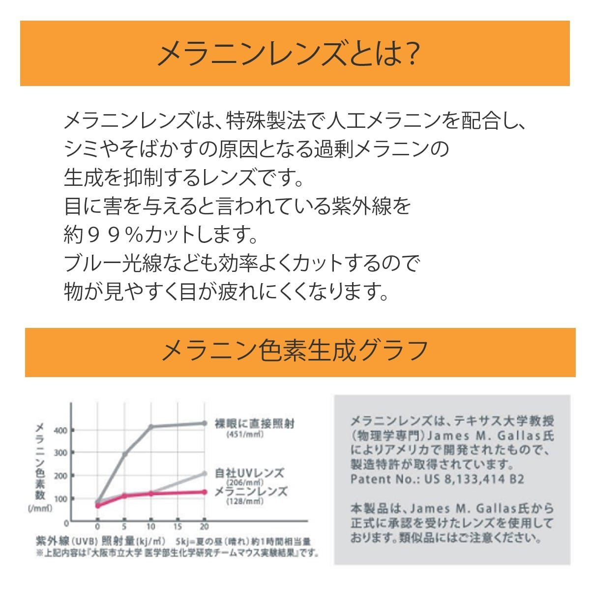 メラニンレンズは、テキサス大学教授(物理学専門)James.M.Galls氏により