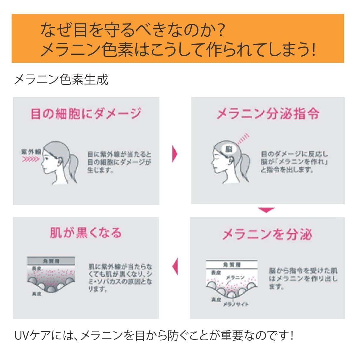 UVケアには、目を紫外線から守るのがとても大切です。