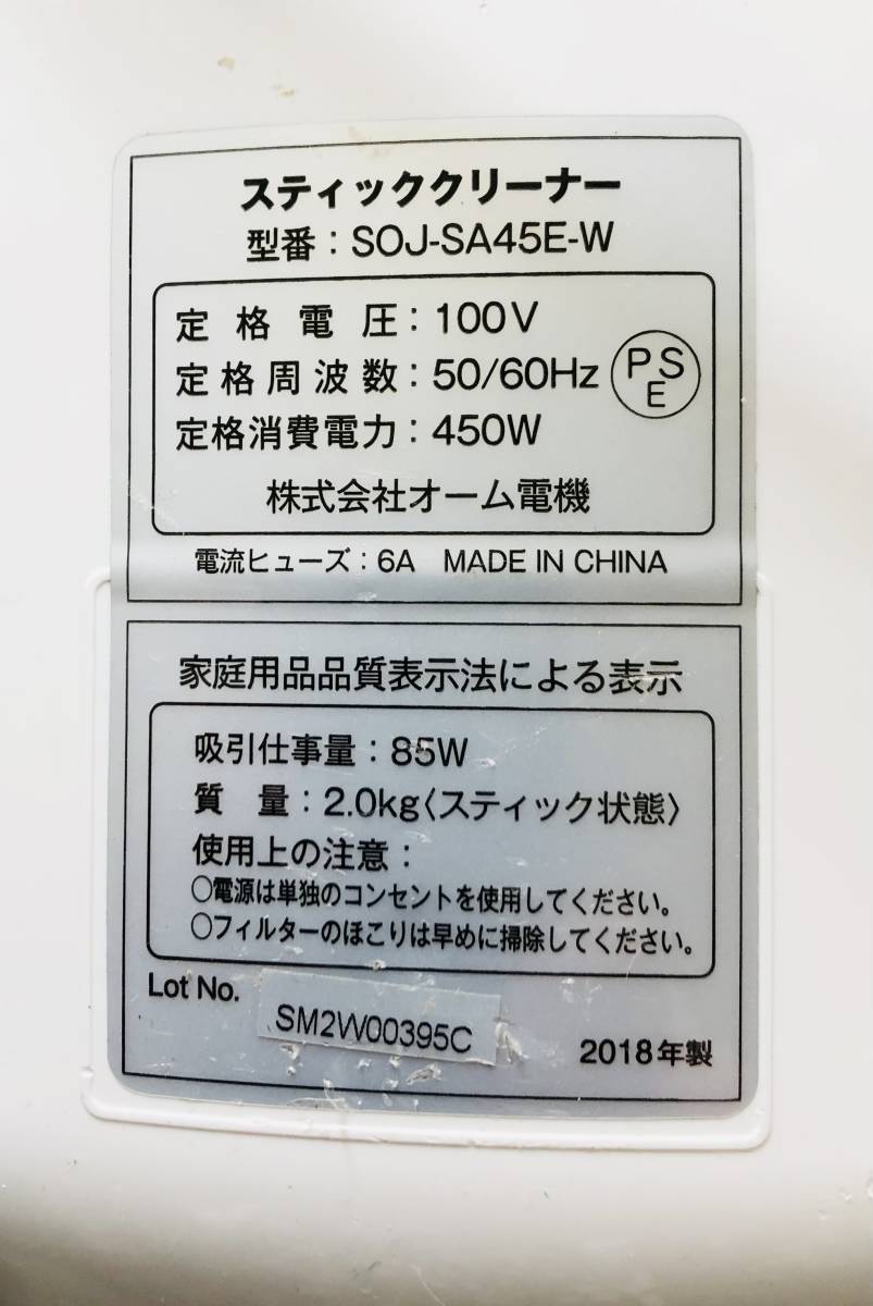 オーム電機 掃除機 スティッククリーナー★2018年製★ハンディクリーナー AC電源 ホワイト★紙パック不要