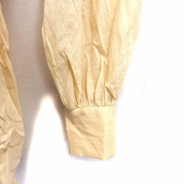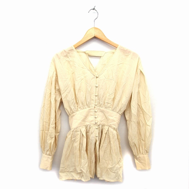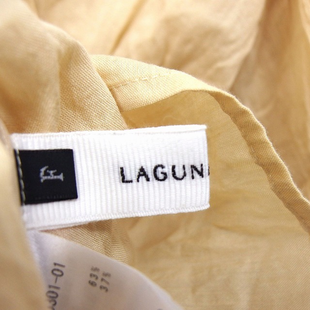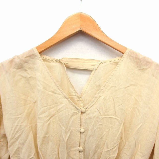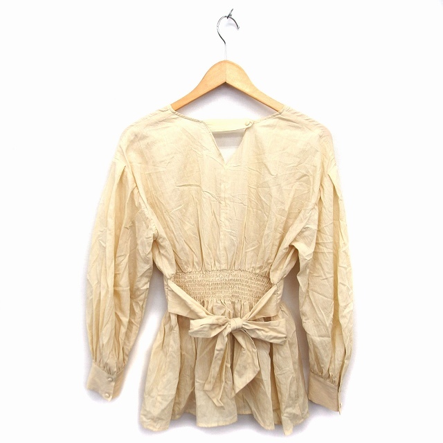 ラグナムーン LagunaMoon シャツ ブラウス ノーカラー ギャザー リボン 透け感 コットン混 長袖 F ベージュ /NT21 レディース