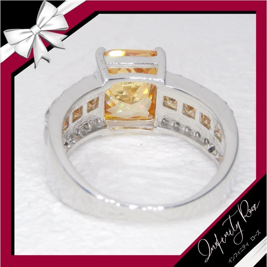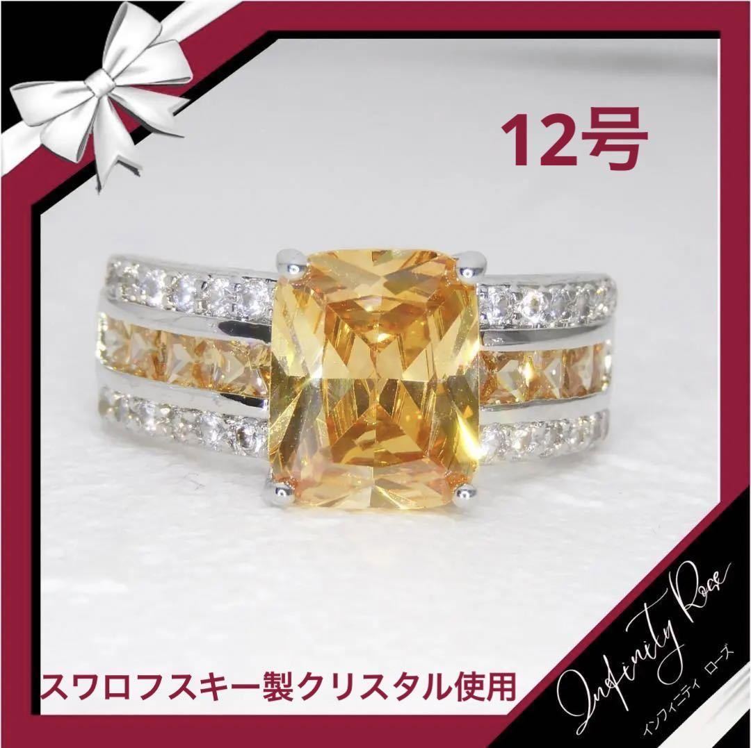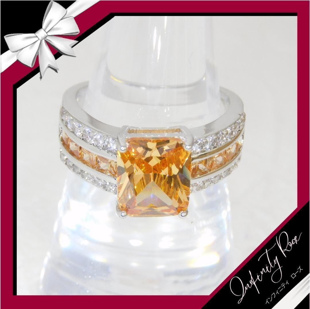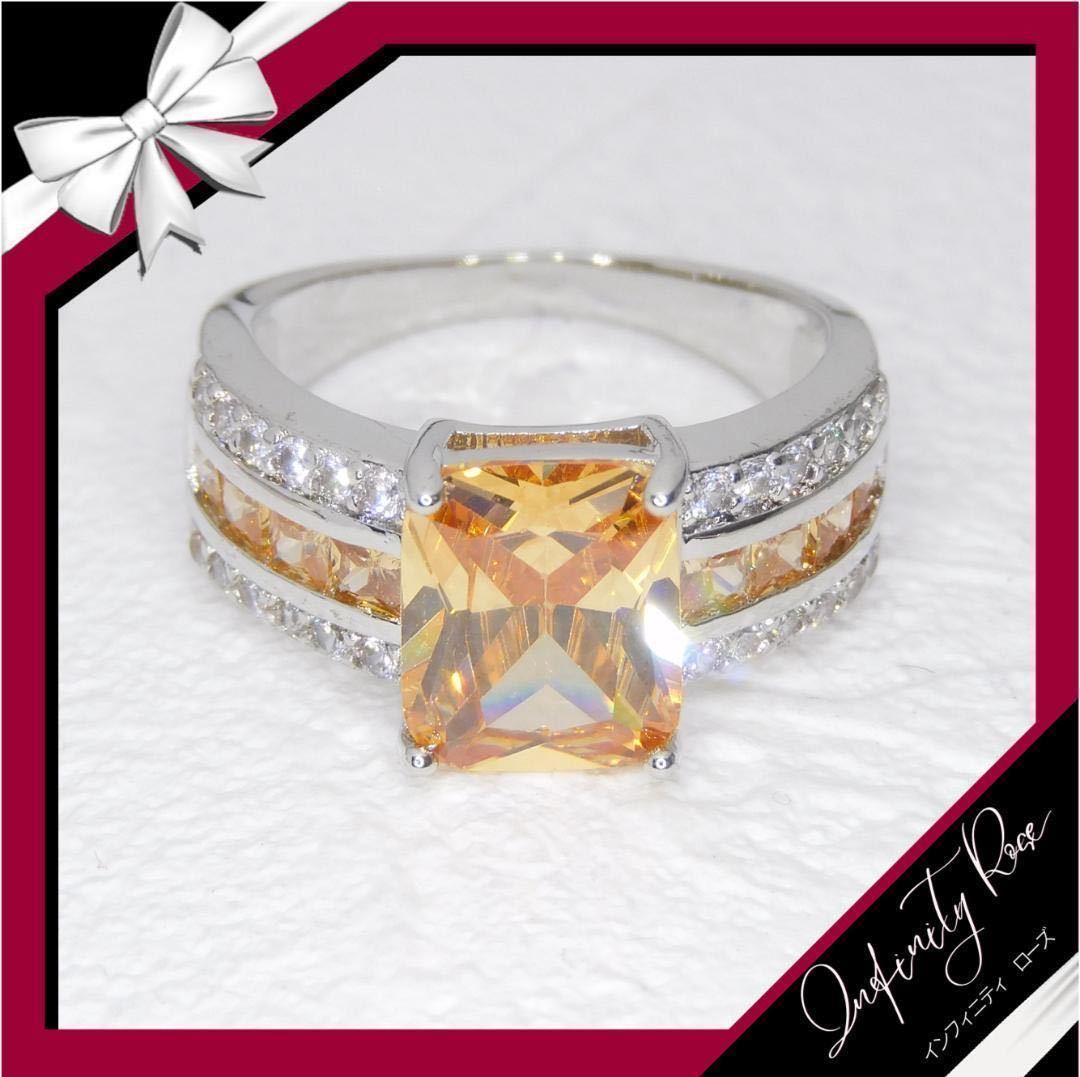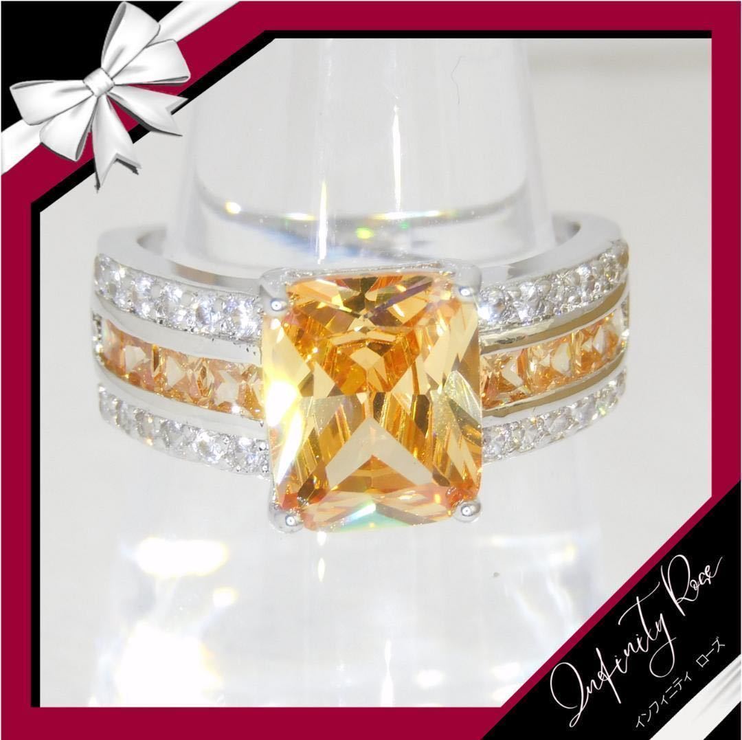 (R047SO)12号 オレンジ豪華煌めく華やかゴージャスワイドリング 指輪 スワロフスキー製クリスタル使用