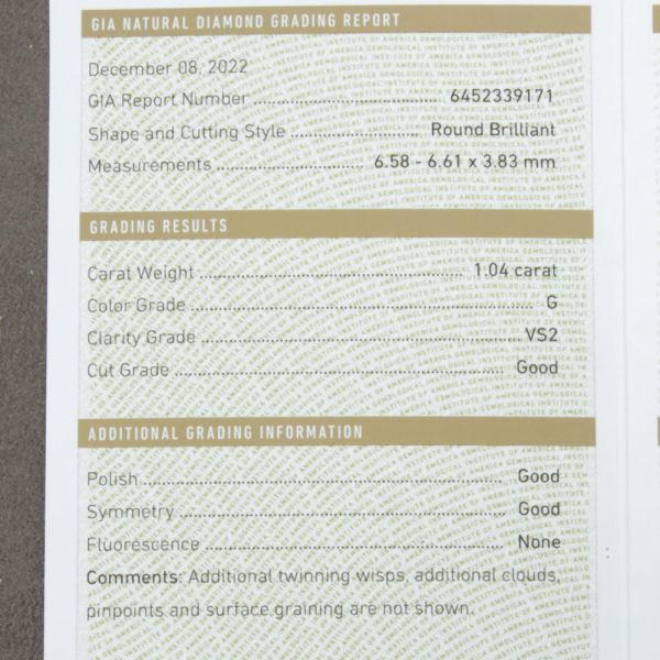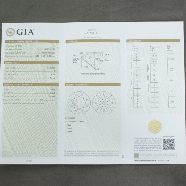 【製造大卸☆最安値】1.04ct Gカラー VS-2 GOOD 天然 ダイヤモンド ルース ラウンドブリリアントカット 【GIA鑑定書付】