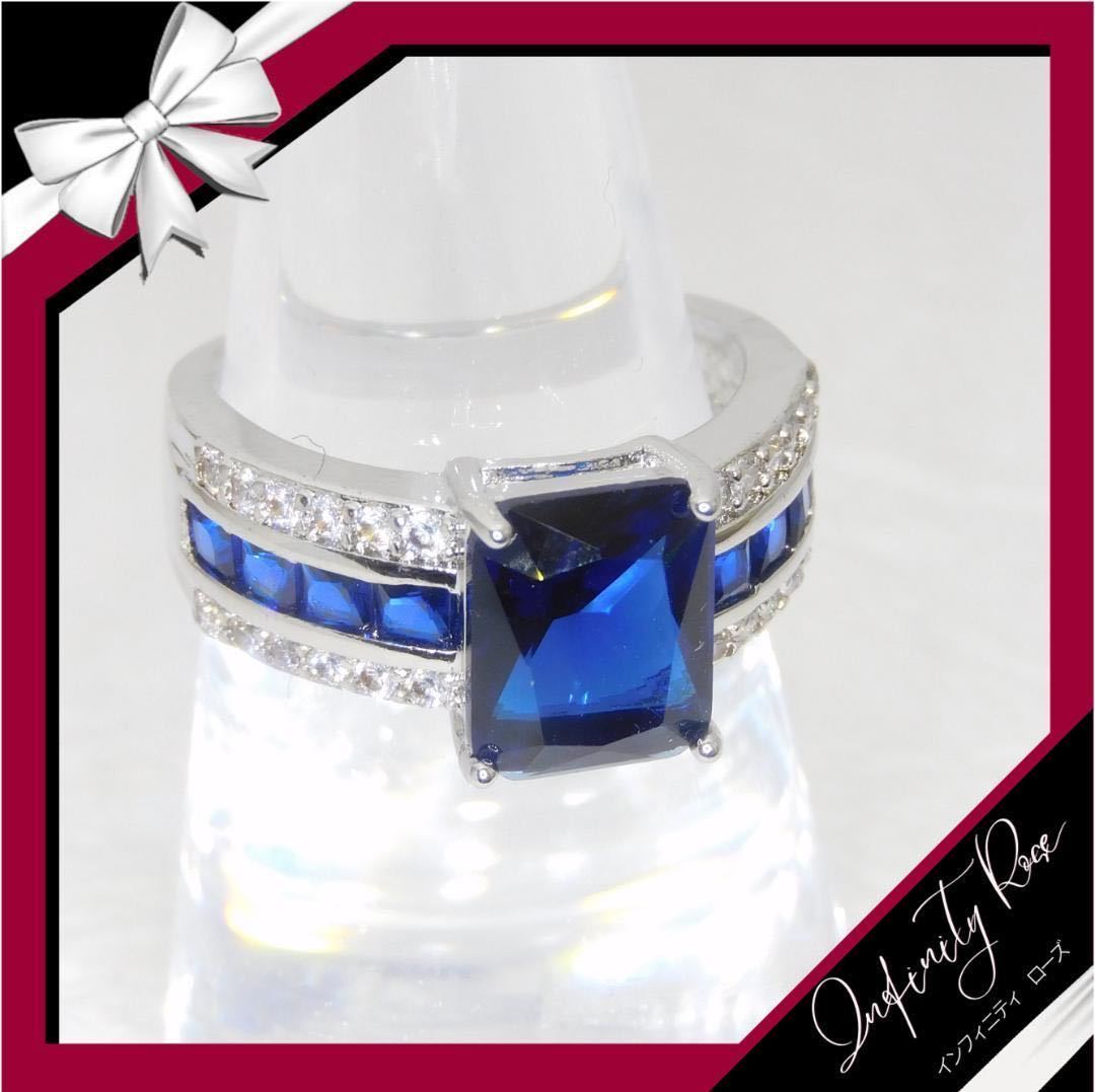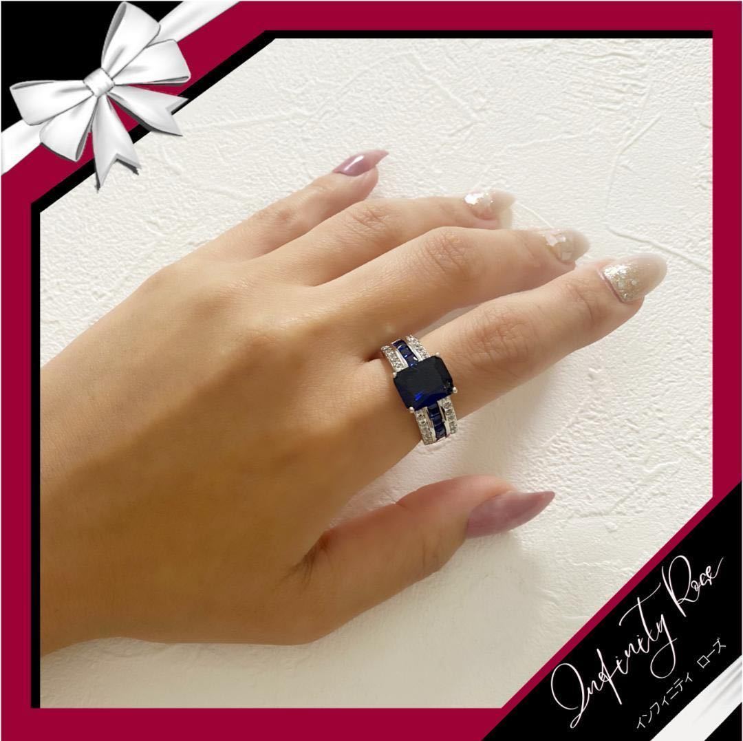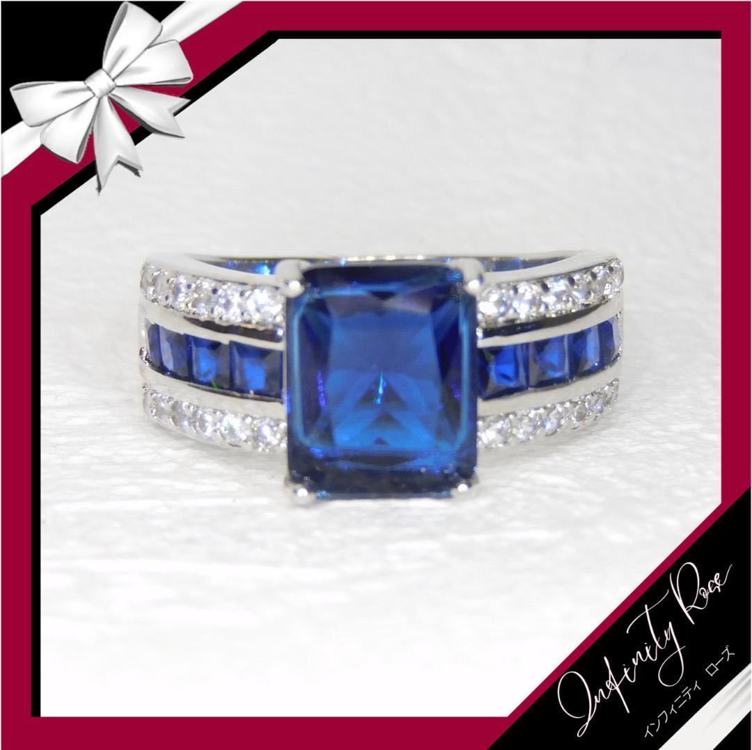 (R047SB)15号 ブルー豪華煌めく華やかゴージャスワイドリング 爪留指輪 スワロフスキー製クリスタル使用