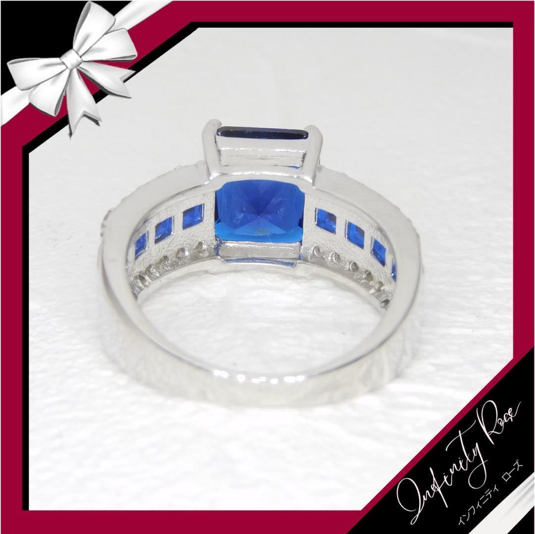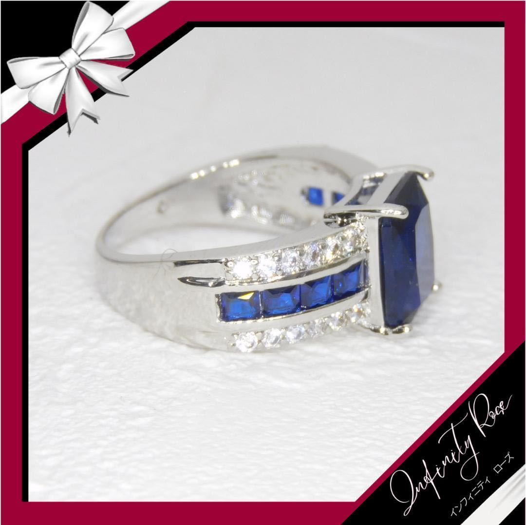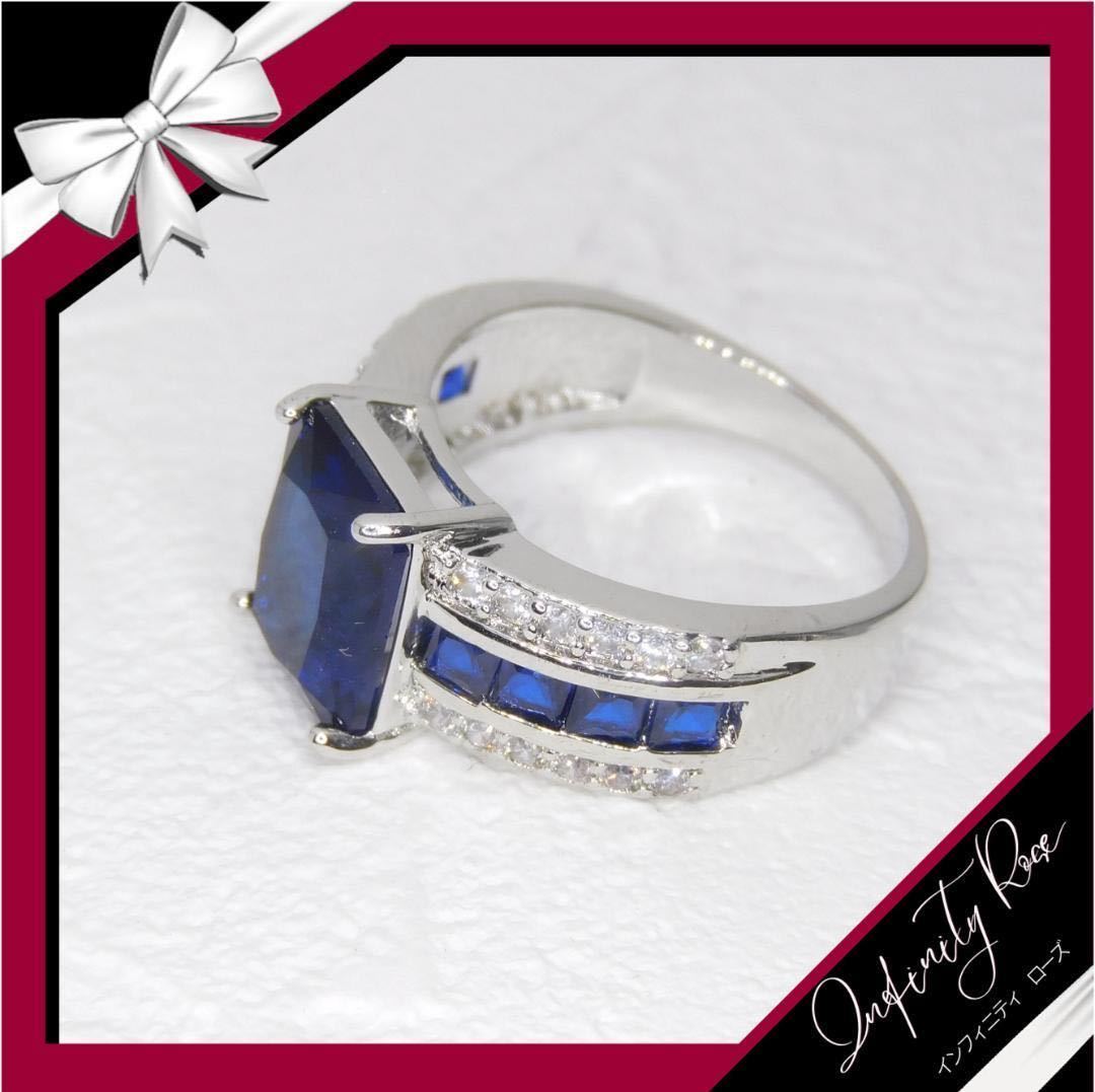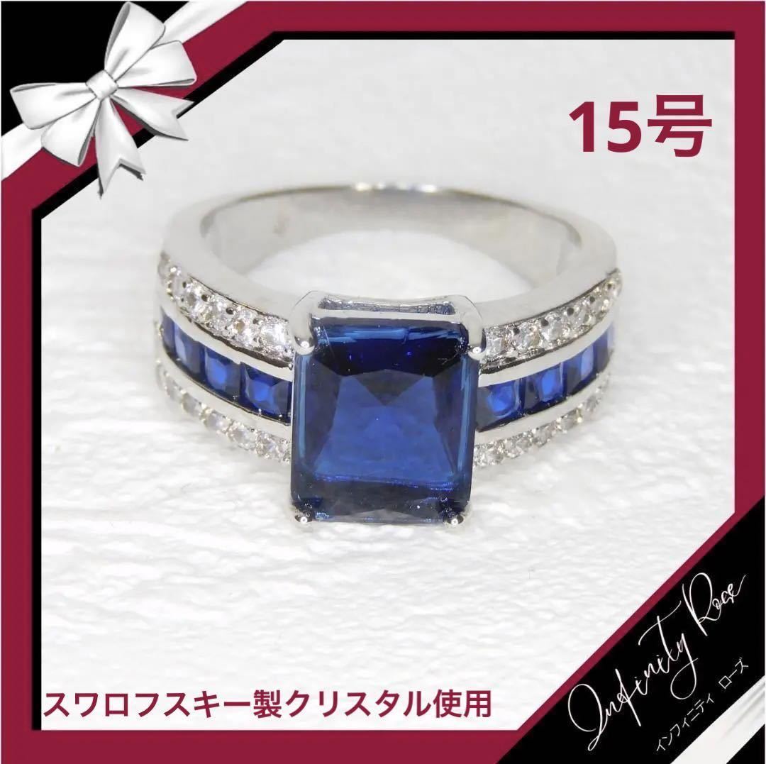 (R047SB)15号 ブルー豪華煌めく華やかゴージャスワイドリング 爪留指輪 スワロフスキー製クリスタル使用