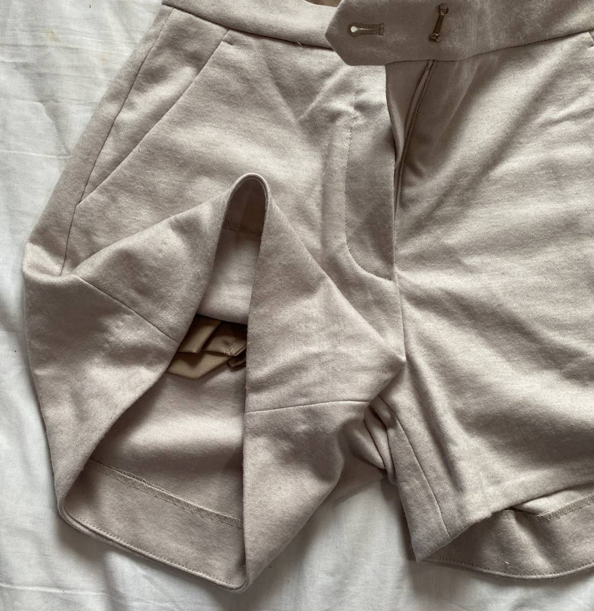20.900円税込み品・目立たない若干の薄汚れ(洗濯で落ちます) ショートパンツ Oサイズ NINE ウール100% 実寸ウエスト65cm 前ファスナー付き 裏地付き 前左右ポケット付き 後ポケット2毛  (メジャー測定 実寸ウエスト65cm 平置き丈38cm 平置きヒップ42cm 平置き裾幅30cm cm cm cm cm ) 生地ポリエステル90% ナイロン10% % ・未使用品(新品表示しません)ですが、衣類の性格上の在庫期間などで、品質保証出来ませんので了承の上で落札ください! ・品質保証、シミ、キズ、汚れ、シワ、アタリ、小さなほつれ、作動しない等の難がありましても返品なしでノークレームノーリターンを了承の上で必ず落札してください、どのような理由にかからわず返品返金は一切できません。