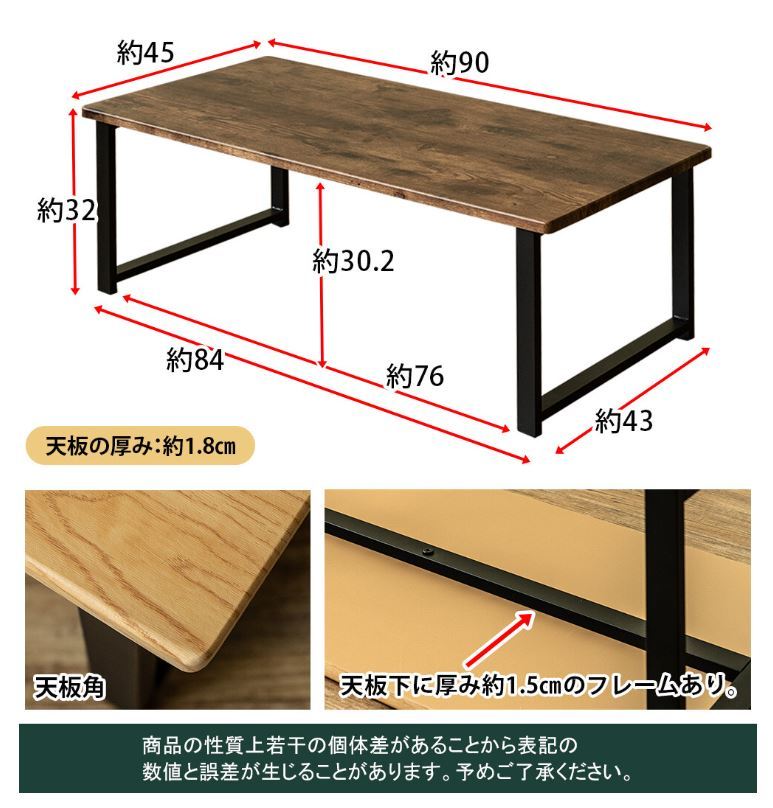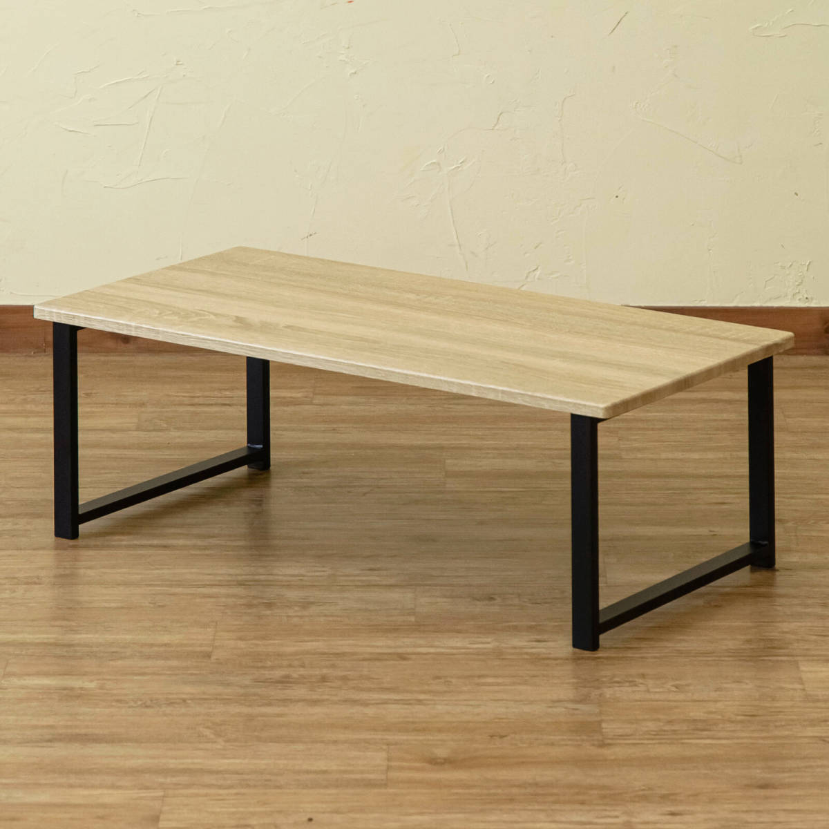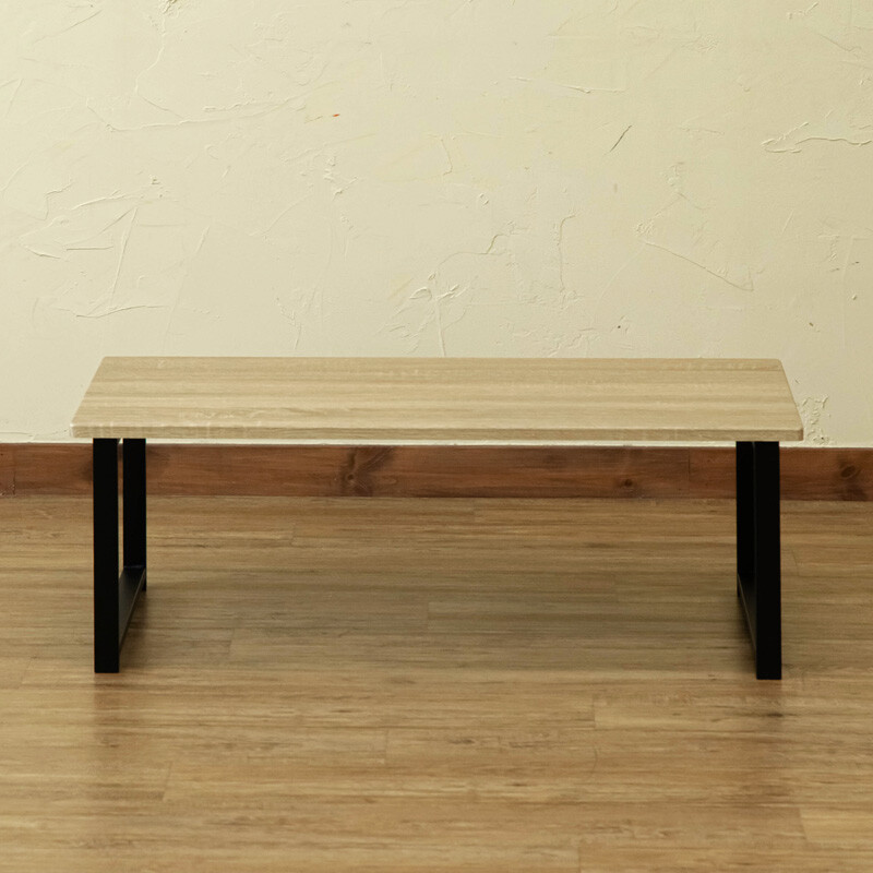 木目調天板とスチールフレームのベーシックデザインのセンターテーブルです