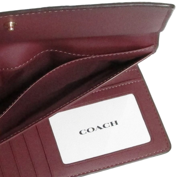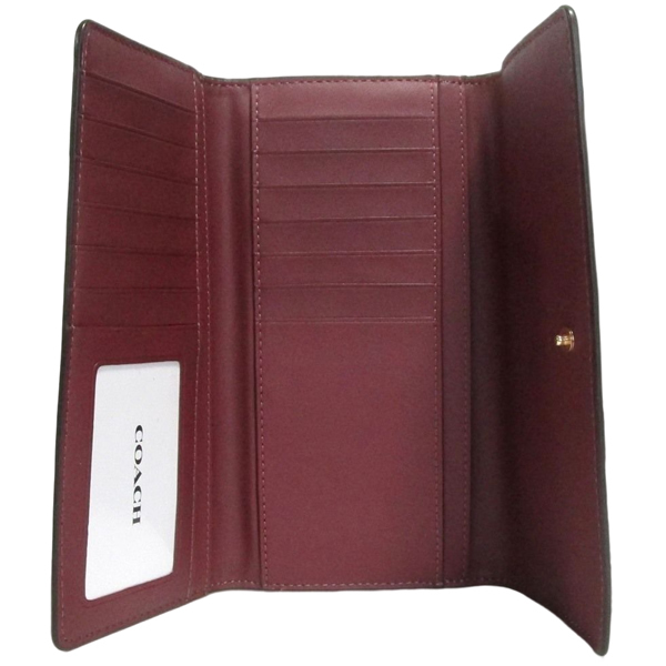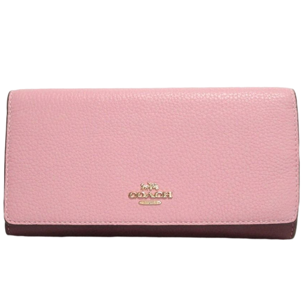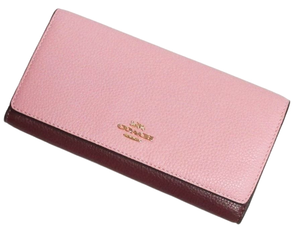 | コーチ 長財布 CG598 ピンク×ワイン スリム トライフォールド ウォレット ぺブルレザー | |||