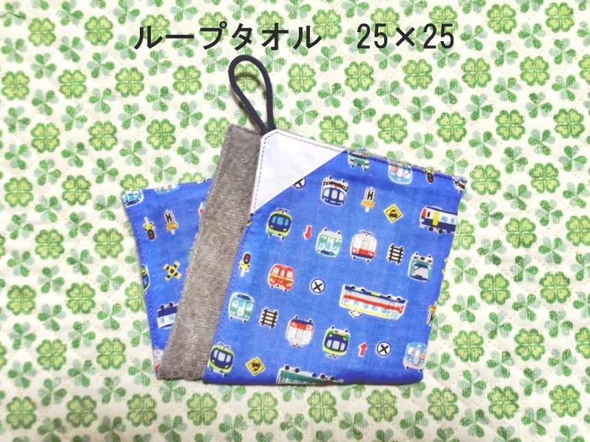 ハンドメイド・正方形25×25センチのダブルガーゼ&タオルで仕上げました、ループ付きタオルハンカチです。 ループの角は名前テープを縫い付けていますので、油性ペンで直接お名前を記入できます。 薄すぎず、厚すぎず、吸水性と速乾性にこだわりました。 型崩れ防止のために、ぐるっと一周ステッチをしてあります。 タオル生地は、肌触りが柔らかく気持ちのいいループをカットしてある国産シャーリングタオル生地を使用しております。 赤ちゃんから大人の方まで、ご使用いただけると思います。 職業用ミシンで作製しました。 手持ちの生地すべては出品できておりません。 出品中の生地でご希望の生地・ご希望のサイズがありましたら質問よりご連絡ください。 生地の在庫がありましたら、対応させていただきます。(タオル生地の色は画像と同じものになります) 商品名にご依頼者様のオーダーと記載し出品させていただきます。 サイズ:25×25センチ 素 材:ダブルガーゼ&国産シャーリングタオル生地 | ||