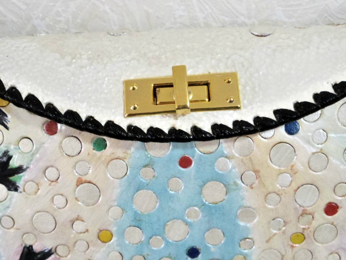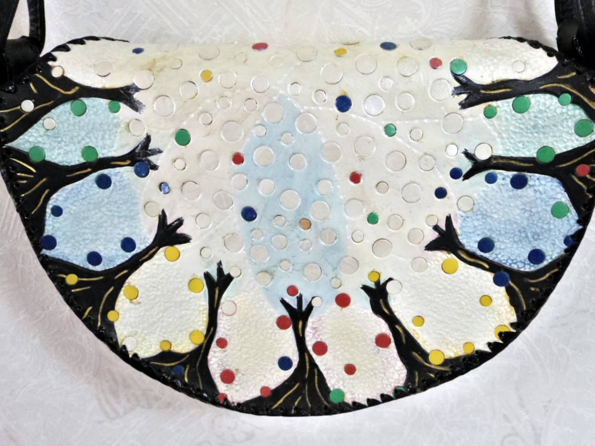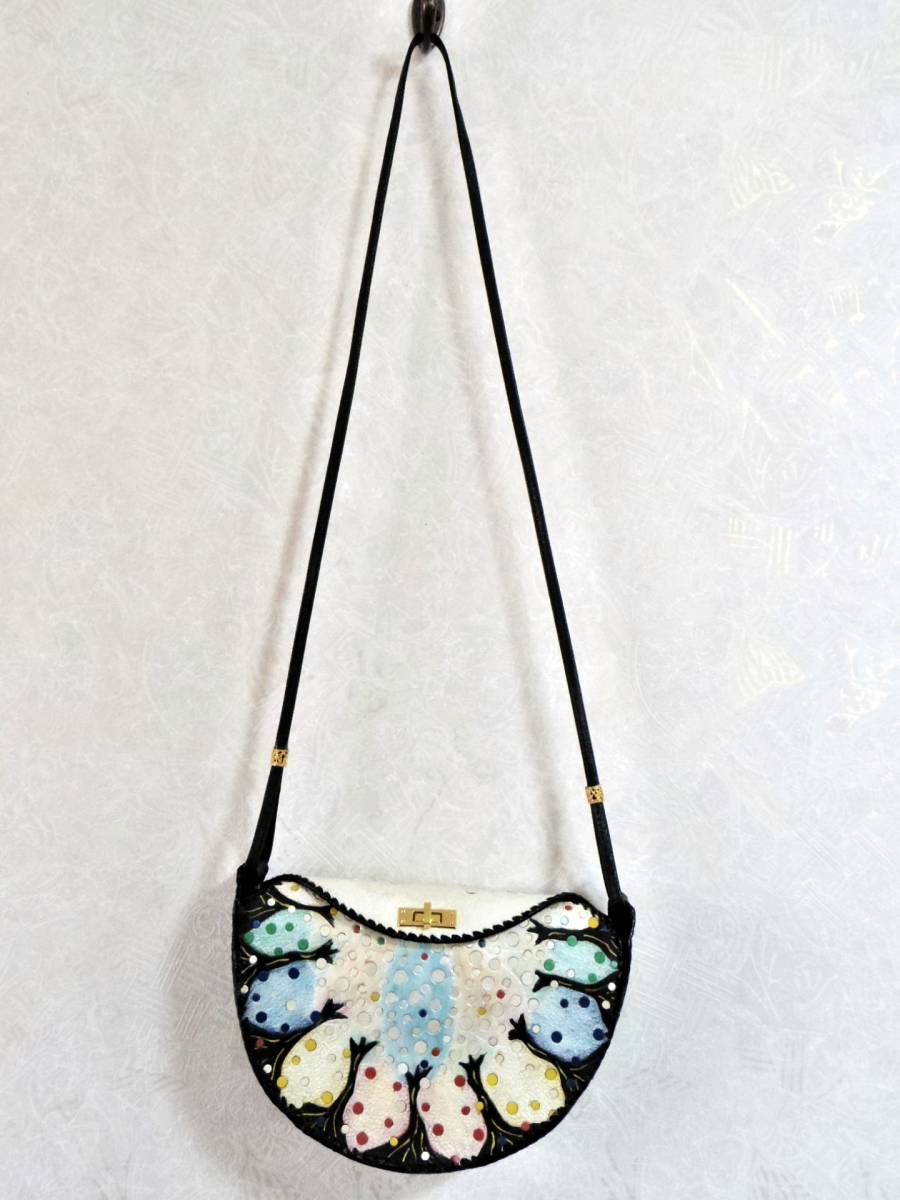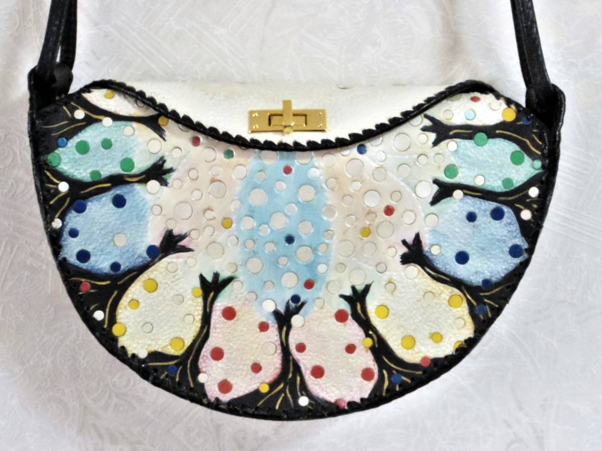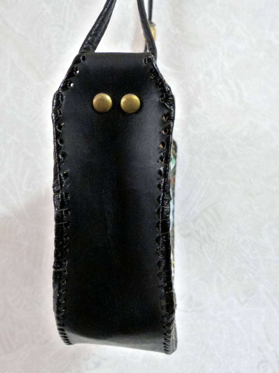 即決!!型押し レザーショルダーバッグ ブラックベース 光沢のある柄 中古になります。