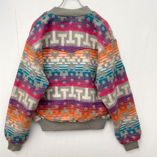 全体にパステルカラーの柄が入った、起毛感のあるジャンバーです!