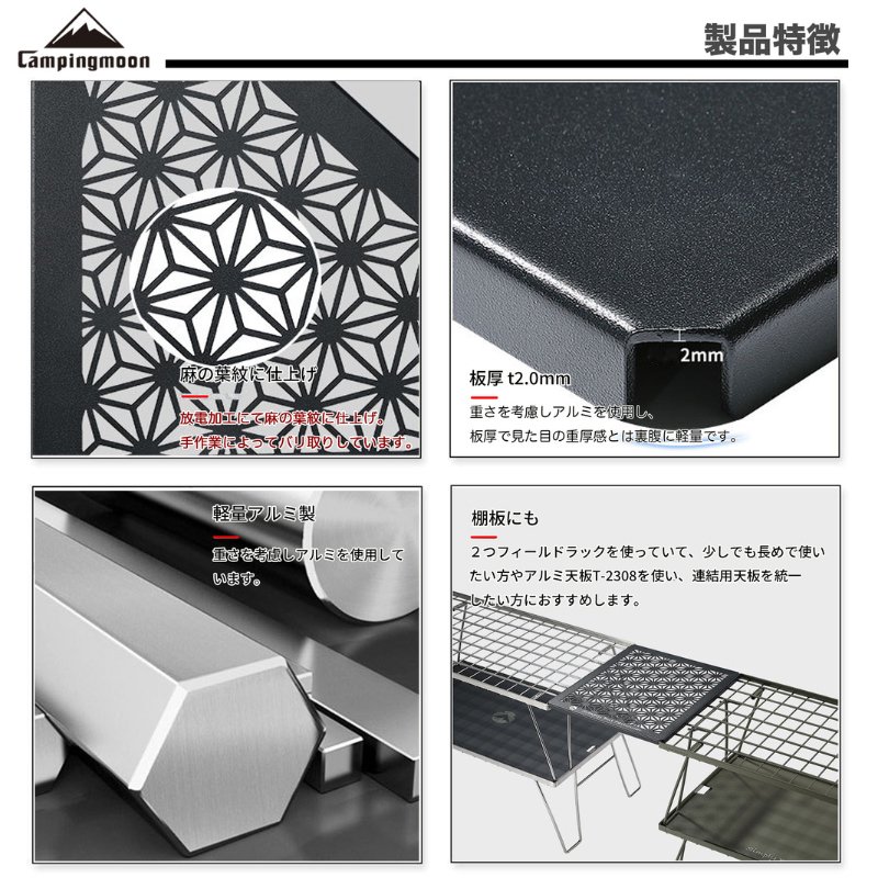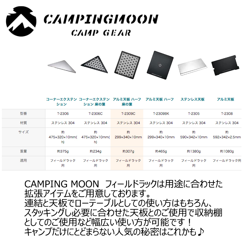 ★キャンピングムーン★CAMPINGMOON★フィールドラック連結用★アルミハーフ天板★T-2309-C★フィールドラックジョイントパーツ★ | |||