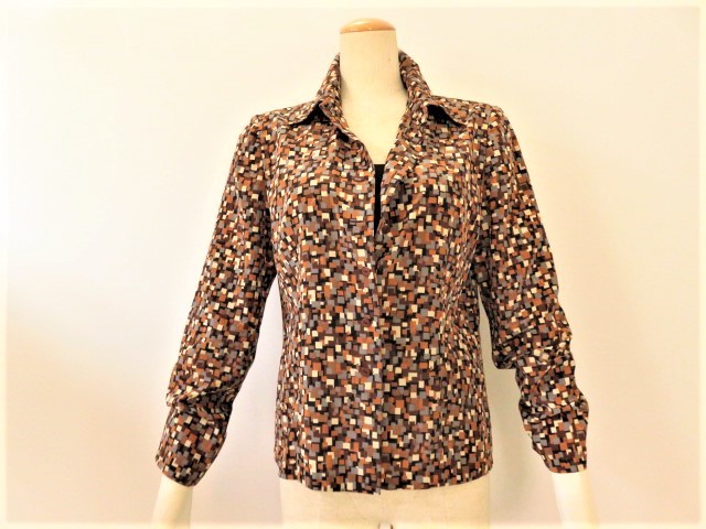 ■新品同様 上質美品HANAE MORI】ハナエ モリ 高級 ブラウス ブラウン 送料185円【38】9号 M 日本製 オールスタイル製 w1226