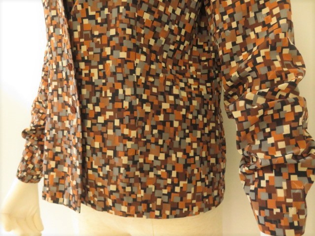 HANAE MORI】の高級ブラウス、お色はブラウンです、お袖はボタン1ヶ所止め。