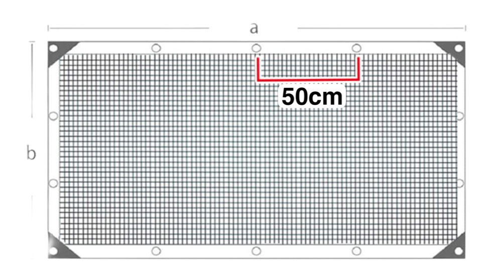 ・50cm間隔にハトメ穴が付いており、設置が簡単です。
