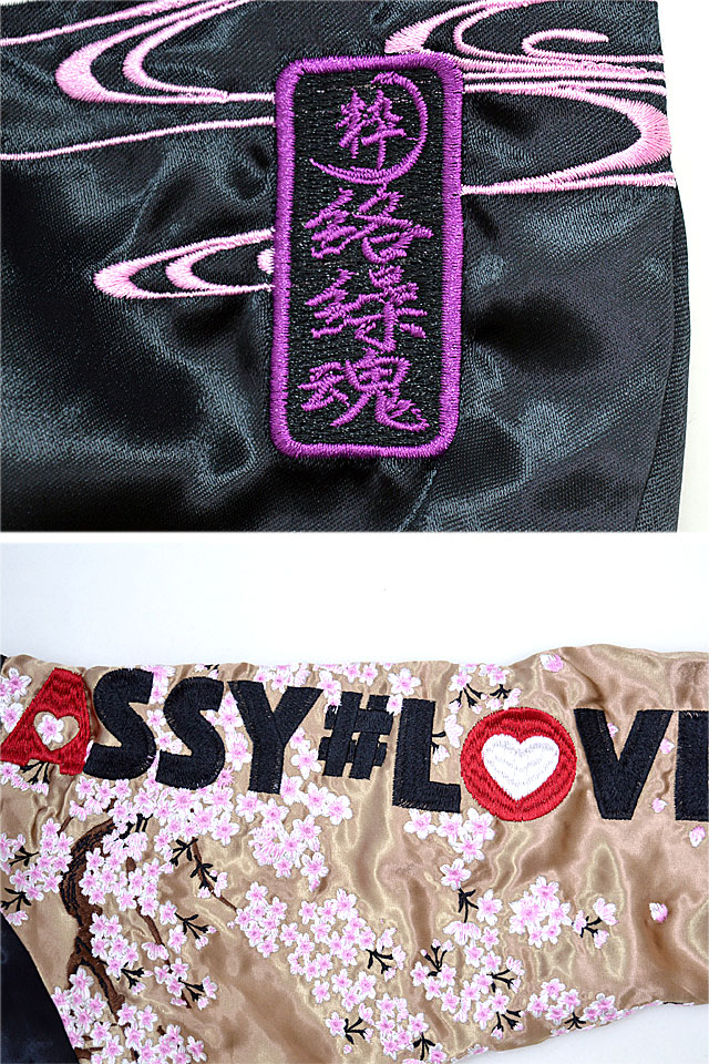 絡繰魂さんから「BETTY BOOP×絡繰魂 BETTYスカジャン(232001)」のご紹介です。 大きな瞳とぽってりした赤い唇が印象的な女の子、ベティ・ブープ(Betty Boop)。 重みを感じる程の刺繍量が魅力的な絡繰魂から、最新作のスカジャンが登場しました。 背中には、着物を身に纏ったベティの姿を落とし込みました。 ボディーにはレーヨンサテンを使用し、ドレープや陰影がくっきりと現れています。 | ||||||||||||||||||||