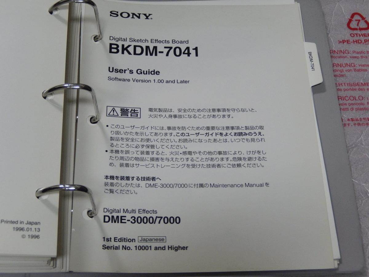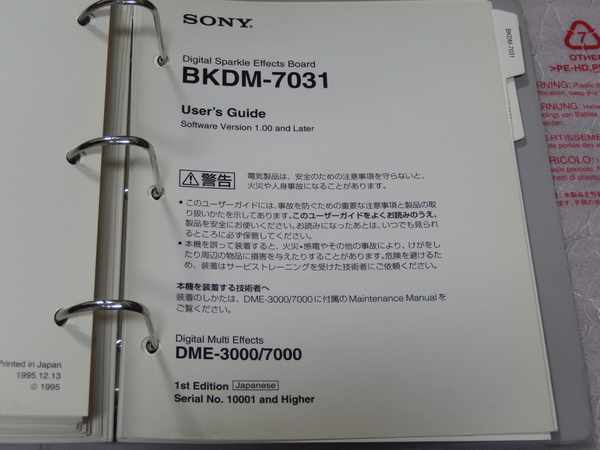 ★★ DME-7000 (SONY) DIGITAL MULTI EFFECTS ユーザーズガイド   DME70UGOA ★★