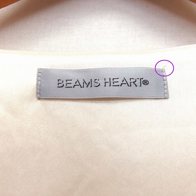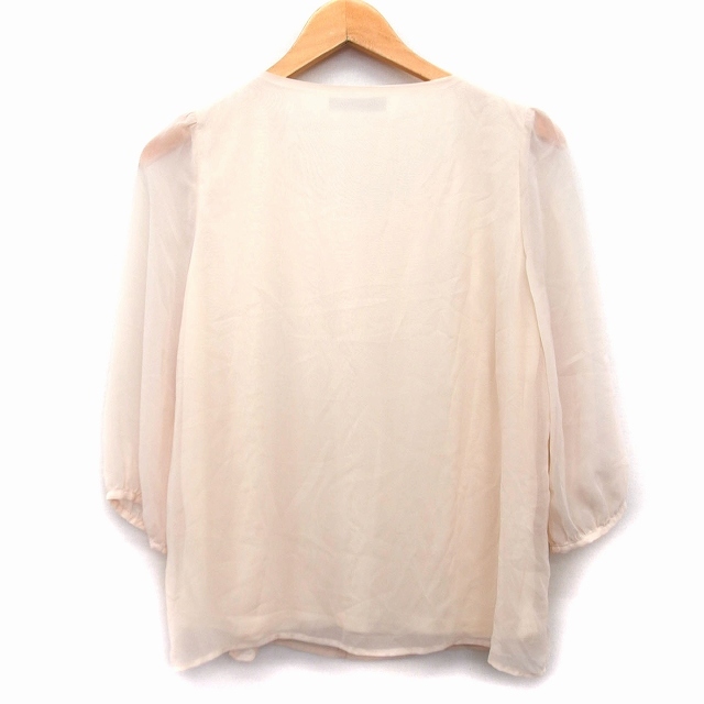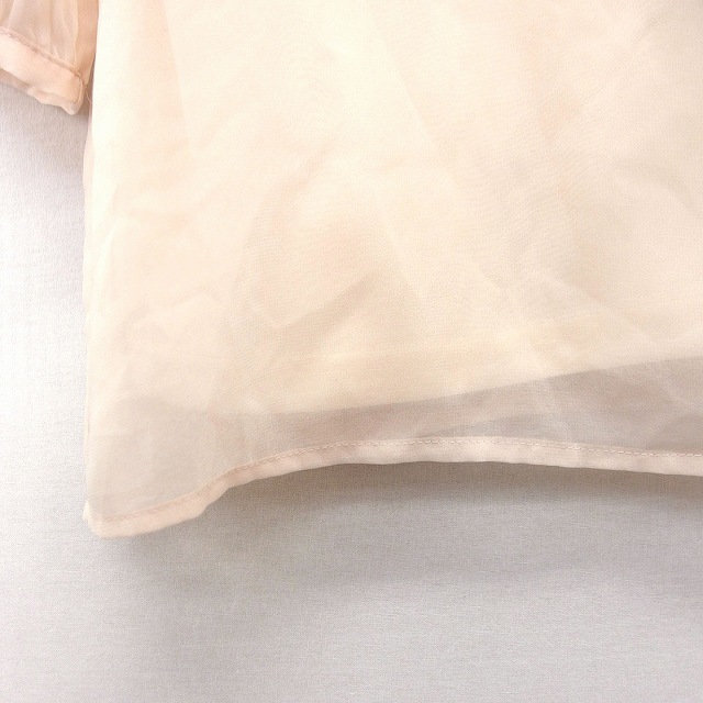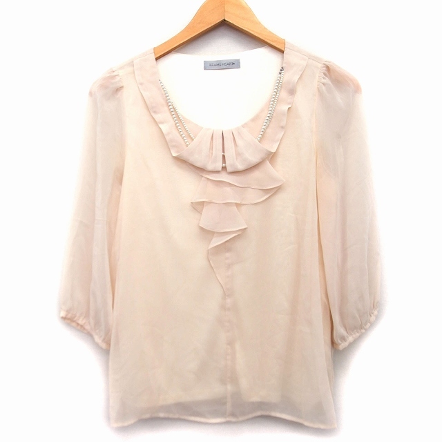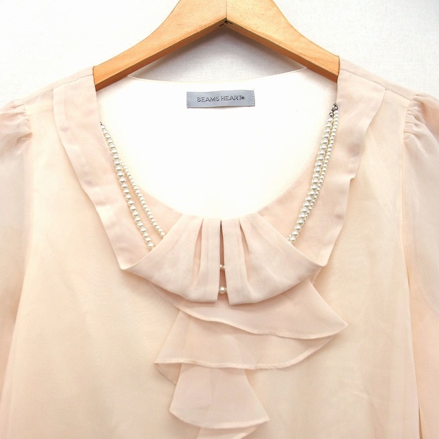ビームスハート BEAMS HEART カットソー ブラウス 透け感 リボン フリル パール装飾 無地 シンプル 七分袖 丸首 ベージュ /HT19 レディース