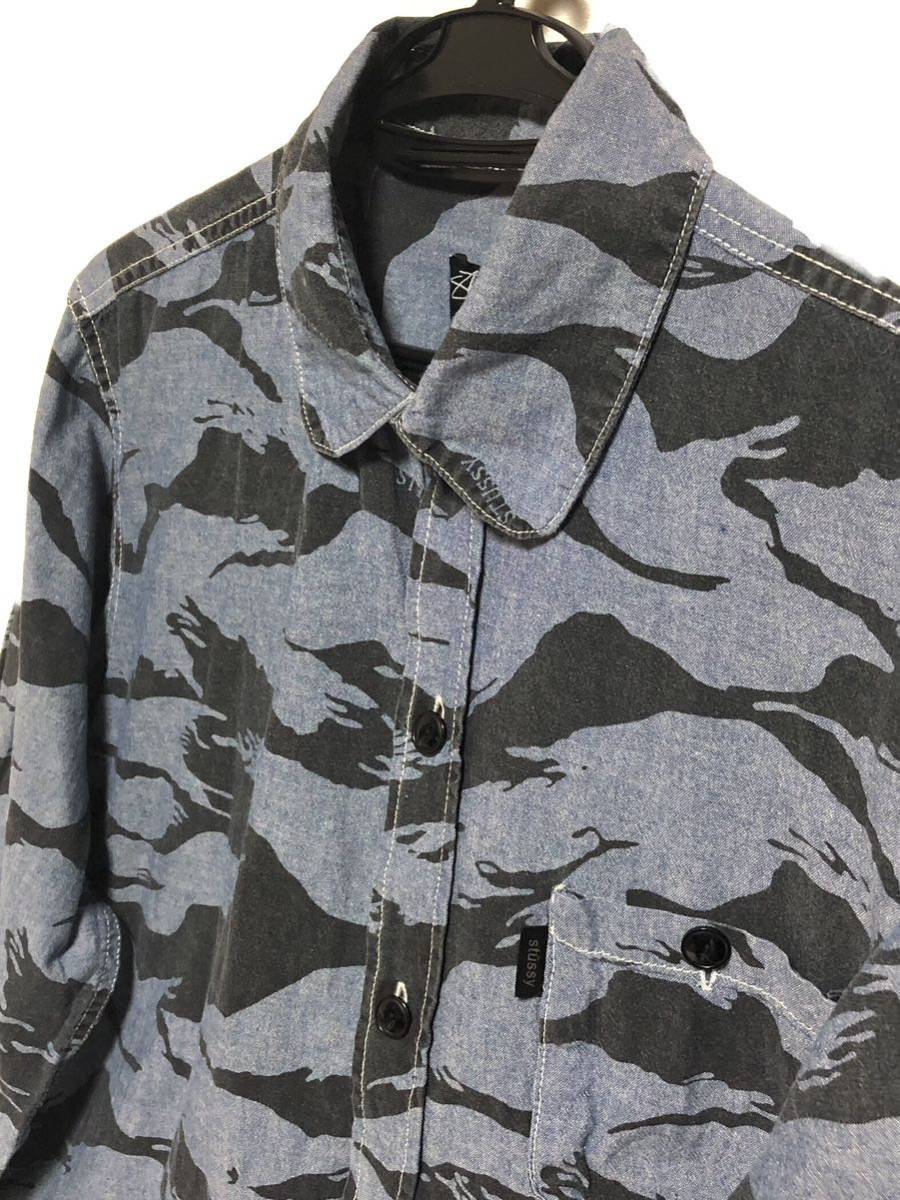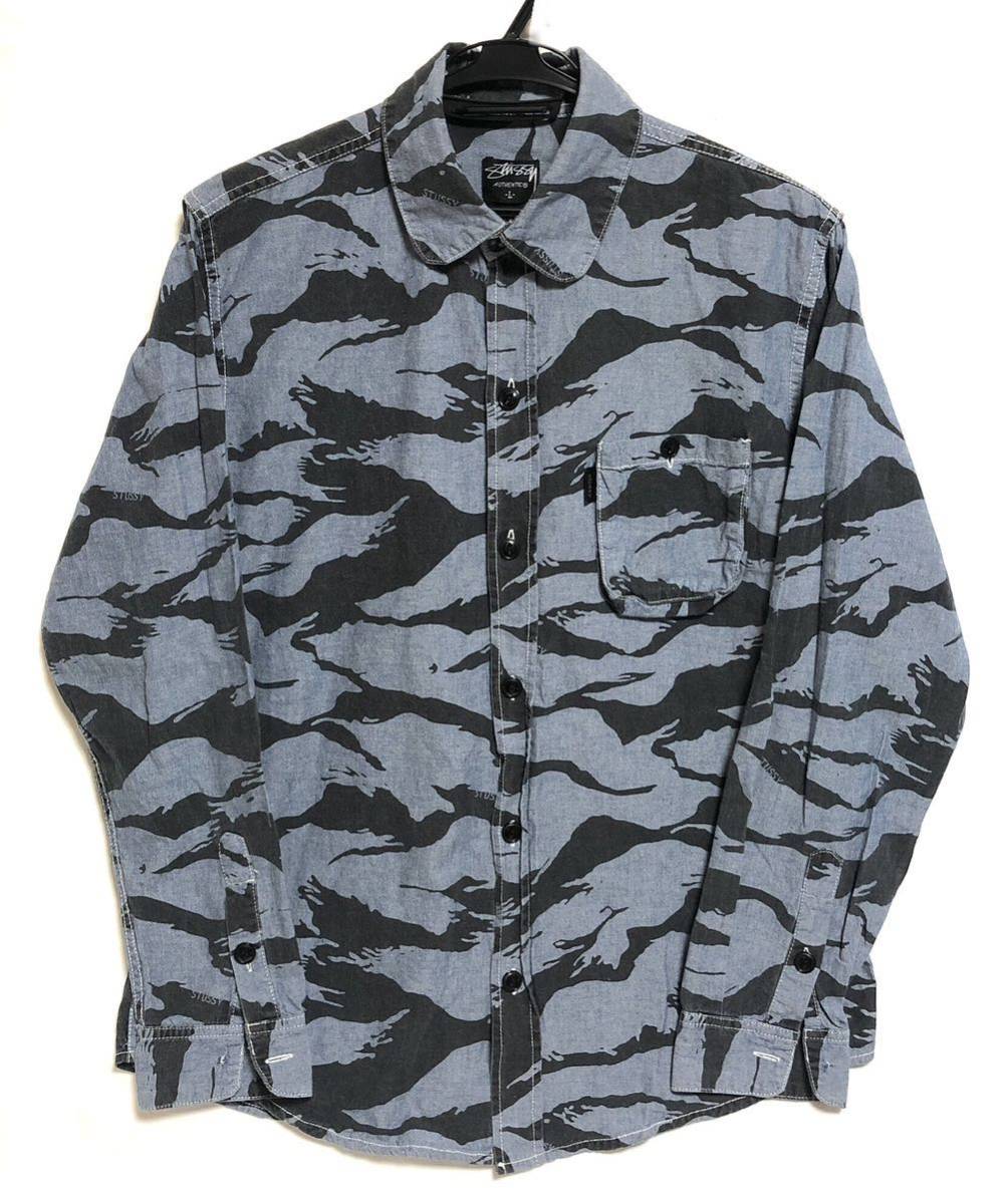 ■レア■Stussy・ステューシー■総柄 長袖シャツ■Lサイズ・authentic・ダンガリーシャツ・STUSSY
