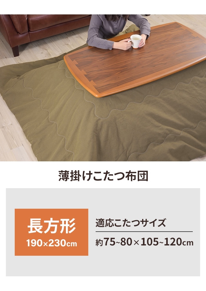 薄掛けコタツ布団 長方形 幅190 奥行230cm インテリア こたつ こたつ布団 |