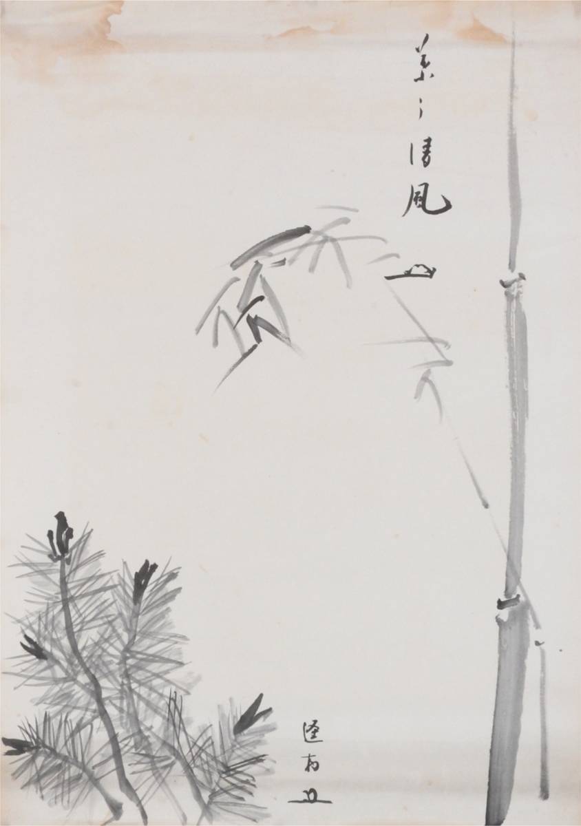 【真作】《マクリ》稲葉心田賛 松竹図 国泰寺派管長 臨済宗