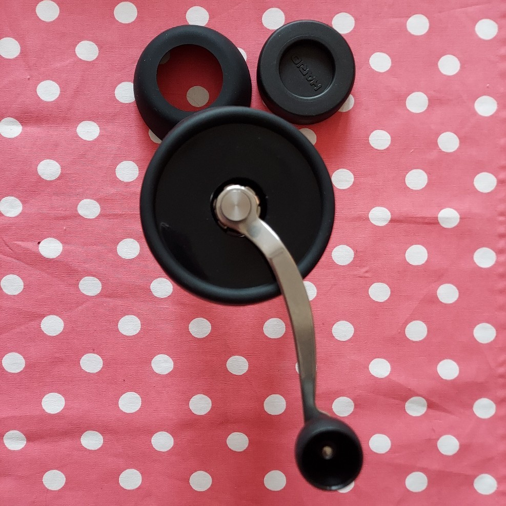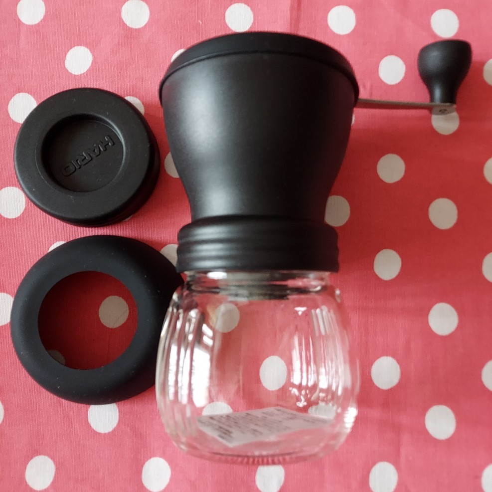 粉受け=耐熱ガラス、ホッパー・ハンドルツマミ・ガラス用蓋=ポリプロピレン、臼=セラミック、ハンドル一式=ステンレス、ホッパー用蓋・滑り止めカバー=シリコーンゴム