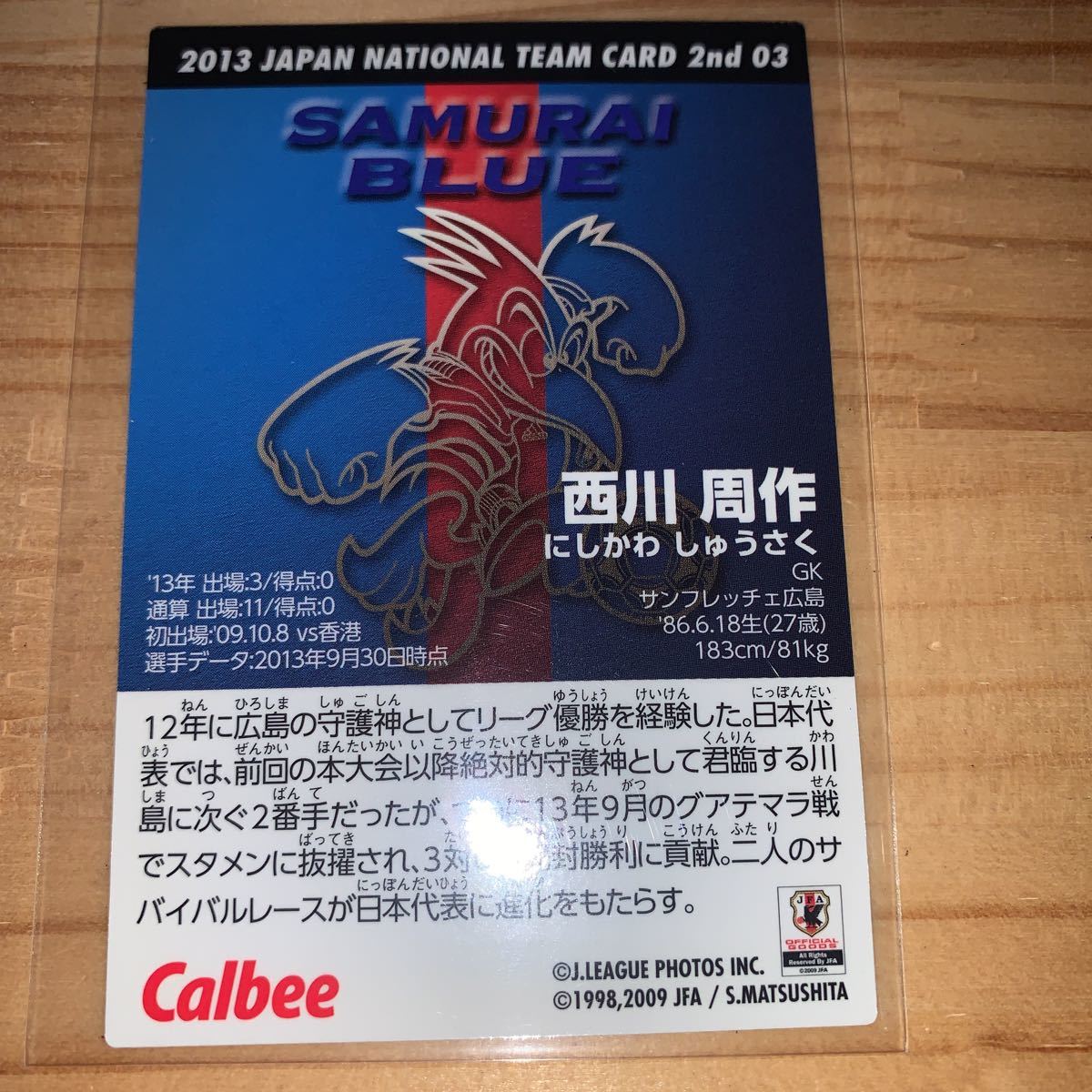 カルビーサッカー日本代表2013 03西川周作です。